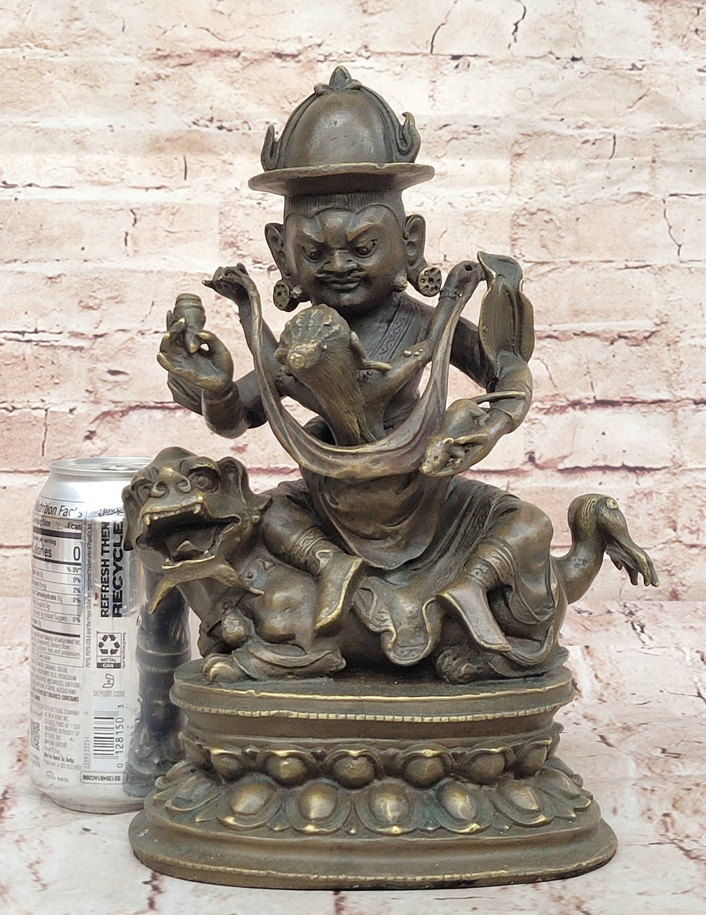 Ideal for home altars, meditation spaces, or as a unique piece of décor, this sculpture exudes both tranquility and authority. It serves not only as a beautiful work of art but also as a spiritual symbol, offering protection and peace to the space it inhabits. This vintage bronze piece is perfect for collectors of Eastern art, spiritual artifacts, or those drawn to the profound symbolism of Tibetan Buddhist culture.
