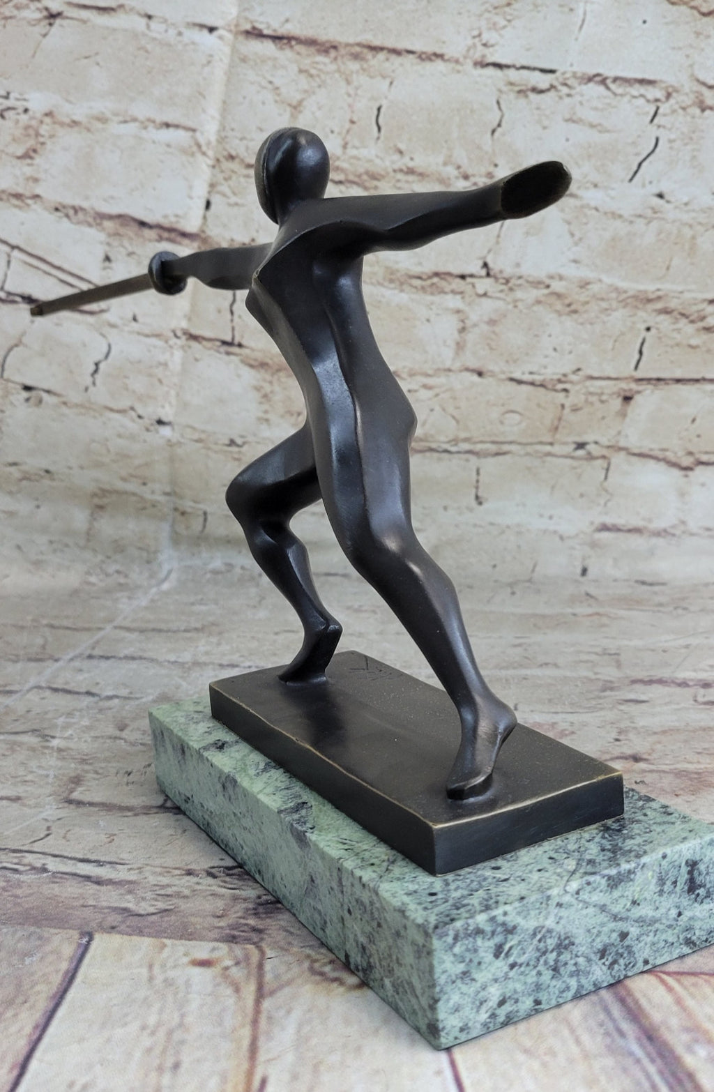 Crafted using the traditional lost wax method, this sculpture is a testament to meticulous craftsmanship. The process, known for its ability to capture fine details, brings out the intricate elements of the fencer's attire and posture. The bronze finish adds a timeless quality to the piece, ensuring that it will be admired for generations to come.