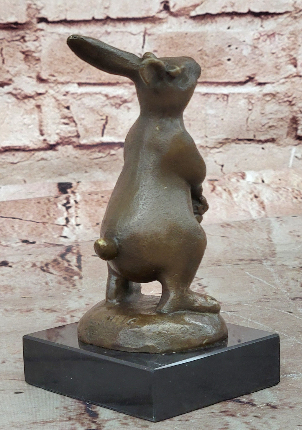 Crafted using the renowned "Lost Wax Method," this sculpture preserves the intricate details of the bunny's form and the delicate petals of the flowers. The two-tone brown patina enhances the sculpture's lifelike quality, adding depth and texture to its appearance. Resting gracefully on a black marble base customized with European Bronze Finery's stamp of quality, this artwork stands as a testament to both the artist's skill and the bunny's enduring appeal. The signature of artist Milo adds an authentic touch to this heartwarming creation, ensuring its artistic value and uniqueness.