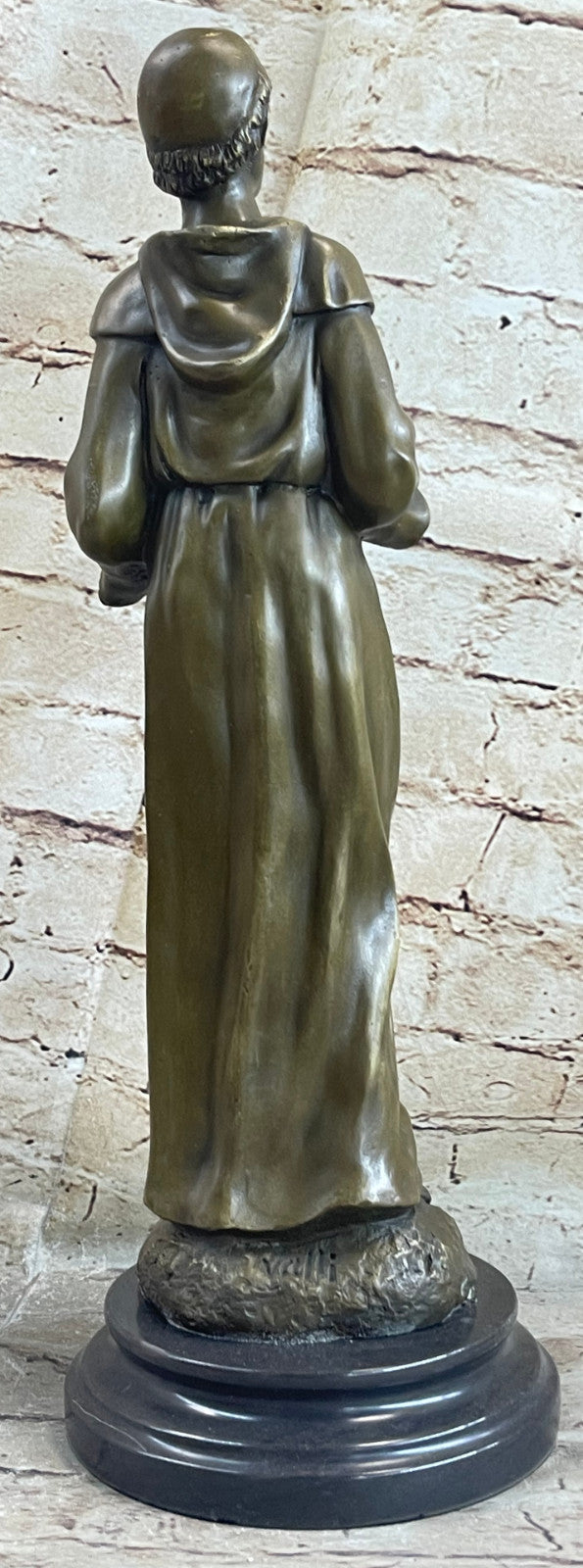 Resting upon a black, variegated marble base, this sculpture is not only a work of art but also a symbol of faith and devotion. With the artist Valli's signature, it stands as a testament to the enduring legacy of Saint Anthony and serves as a cherished item for those who hold him dear. Whether displayed in a religious setting or as a source of inspiration in a personal collection, this statue embodies the saint's powerful intercession and compassionate spirit.