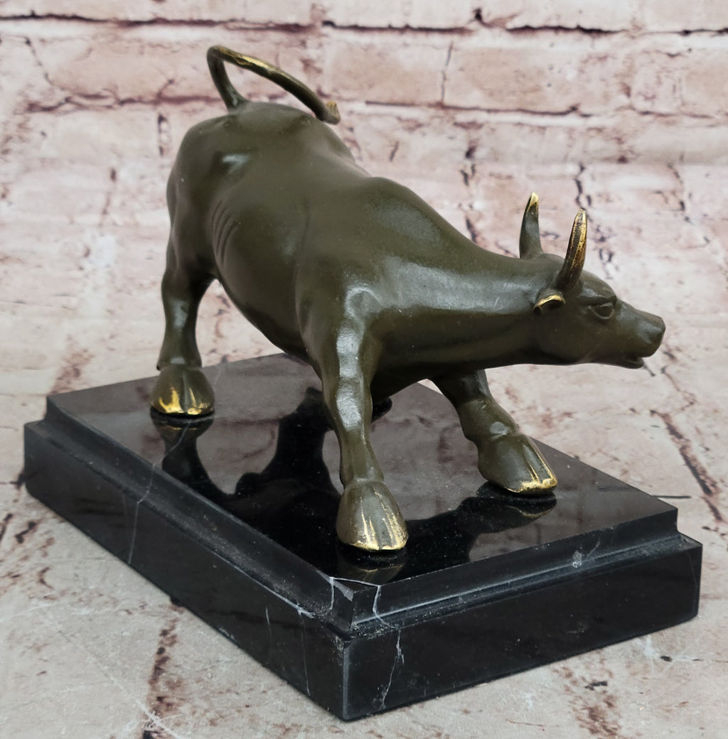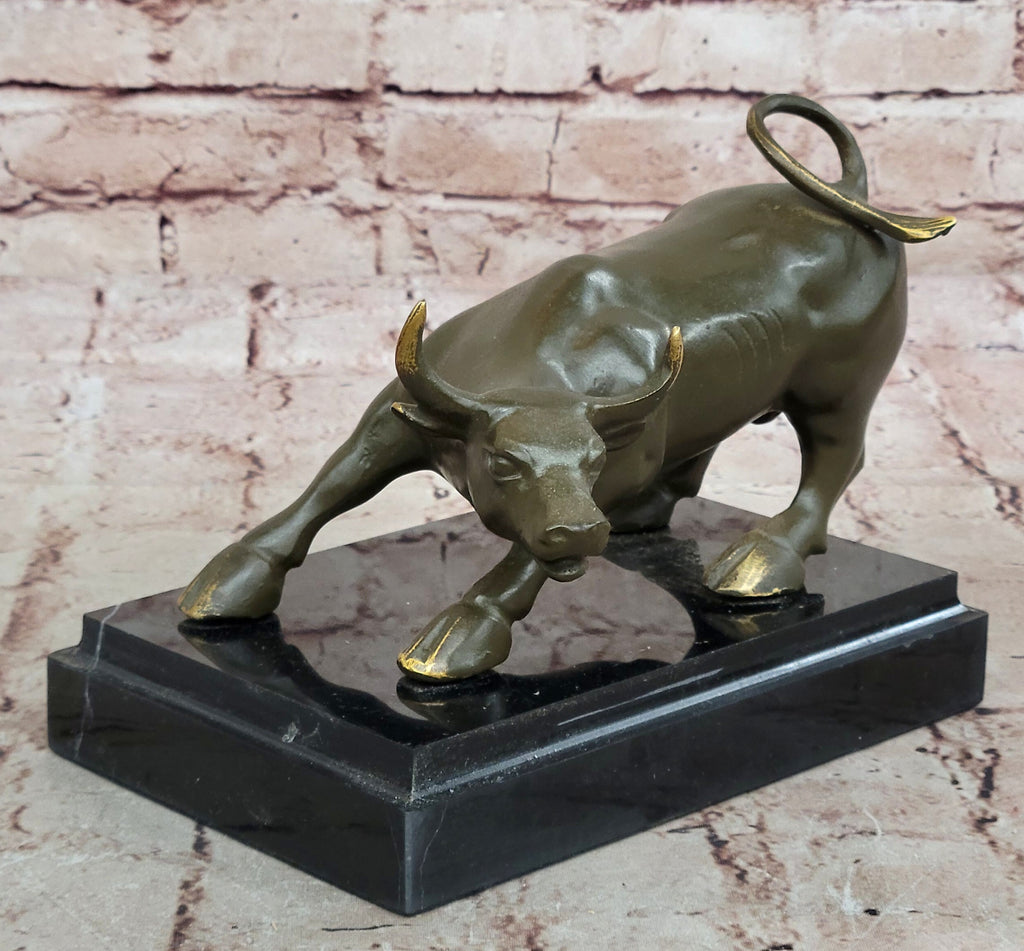 Crafted entirely from genuine bronze using the lost wax method, this sculpture showcases exceptional artistry and attention to detail. The two-tone brown patina enhances the bull’s contours and musculature, bringing a lifelike presence to the piece. The surface finish not only adds visual depth but also preserves the sculpture for generations.