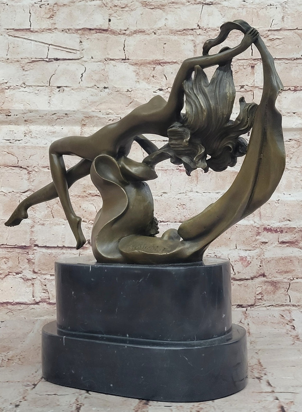 Signed by the talented artist G. Michiel, this bronze sculpture serves as a reminder of the beauty and power of self-expression. It is a perfect addition to any art collection, a striking centerpiece in your home, or a unique gift for those who appreciate the free-spirited nature of dance and artistic expression.