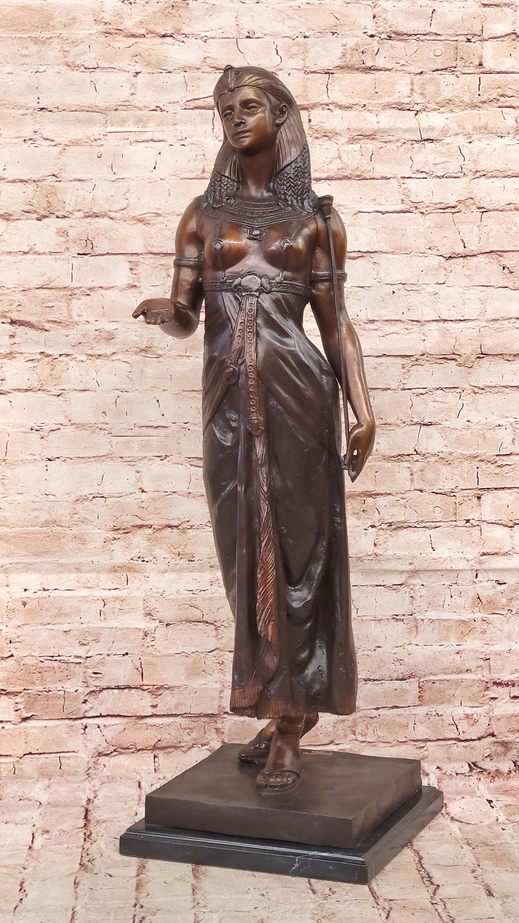 The princess is impeccably dressed in elegant attire, with a slim headband adorning her graceful figure. The sculpture, meticulously crafted from the finest bronze material, showcases the exceptional skill of our foundry in creating a remarkable replica that faithfully captures the essence of the original artwork. The artist's signature can be found on the side of the bronze socket, affirming its authenticity and craftsmanship.
