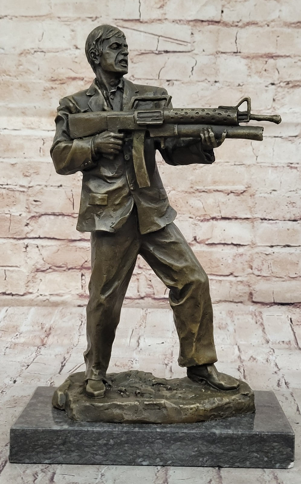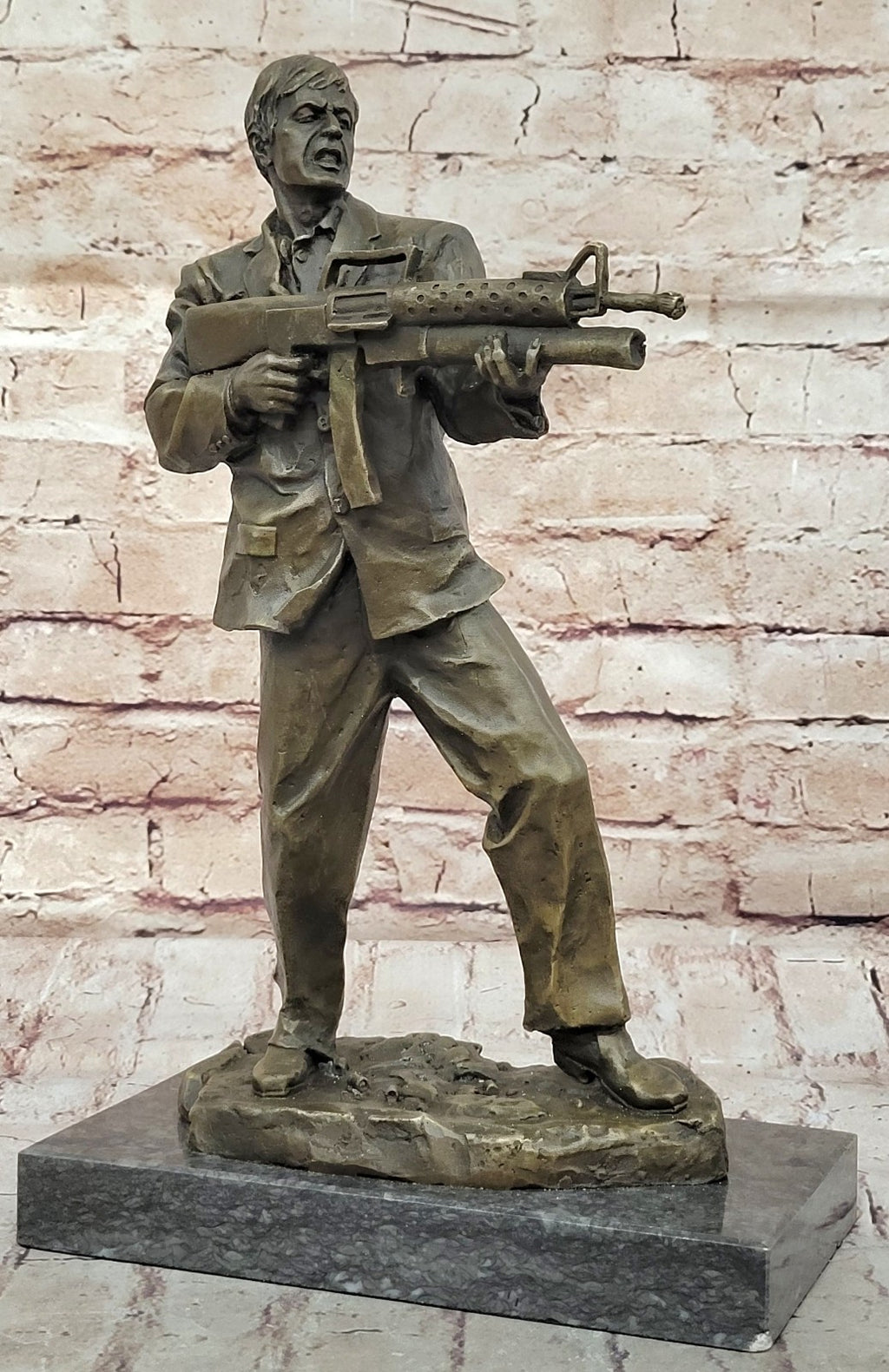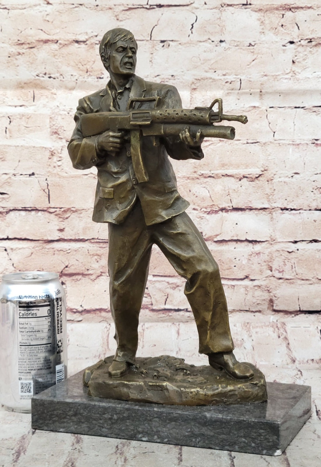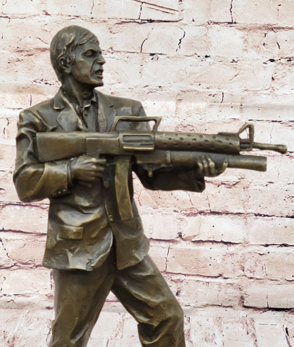 For Scarface aficionados, this bronze sculpture stands as a powerful conversation piece, inviting dialogue and admiration for its ability to capture the essence of a legendary movie moment. Whether displayed in a home, office, or private collection, this exquisite work of art promises to be a compelling and enduring homage to the enduring legacy of Tony "Scarface" Montana.