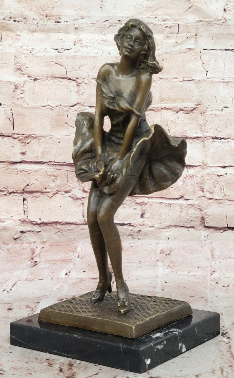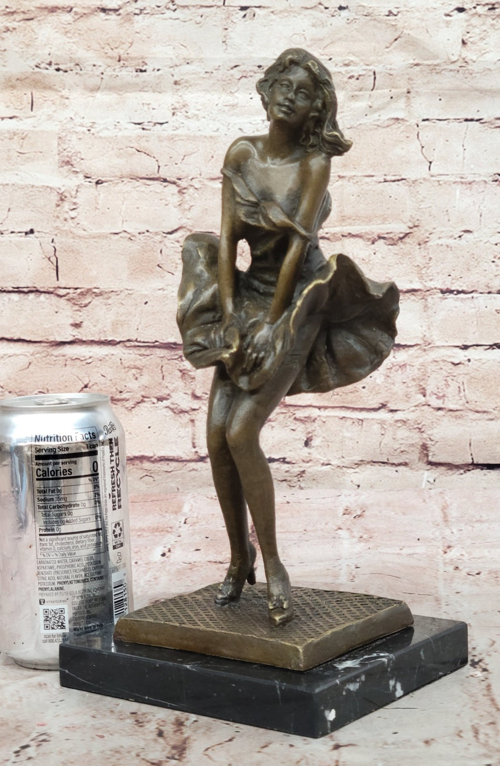 The bronze sculpture, meticulously crafted using the ancient "Lost Wax Method," stands as a tribute to Marilyn Monroe's life and legacy. Placed upon a solid black marble base, the artwork reflects the artist's commitment to portraying the complexities and depth of the celebrated actress. As a poignant reminder to stay true to oneself amid life's challenges, the sculpture invites viewers to reflect on Marilyn's journey and the multifaceted nature of her existence. Signed by the artist Aldo Vitaleh, this sculpture is a labor of love and a timeless homage to an enduring cultural icon.