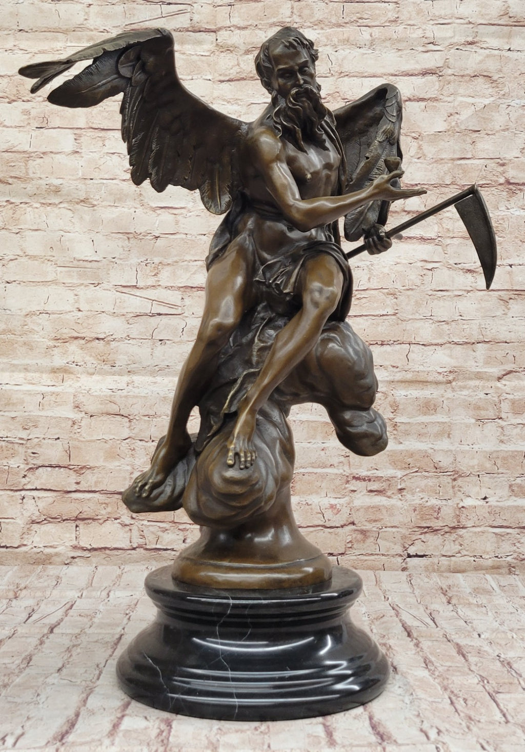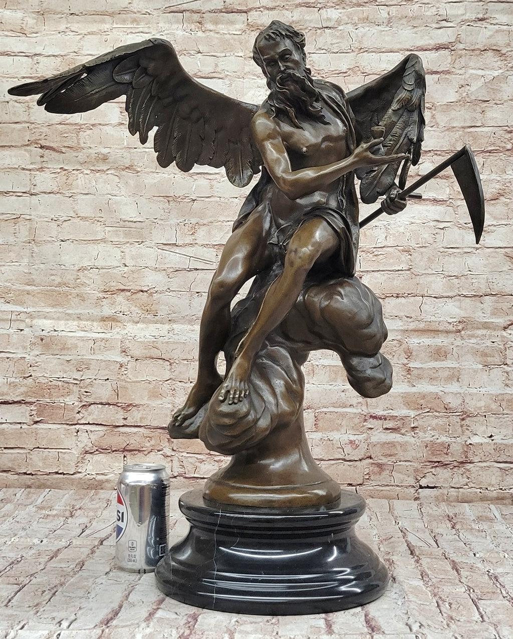 Mounted gracefully on a black marble base, the statuette bears the artist Moreau's signature, a testament to the artist's skill and vision, making it a cherished addition to any art collection or decor. Embrace the contemplative beauty of Chronos with the hourglass, a symbolic piece that transcends time and evokes reflections on the fleeting nature of existence.