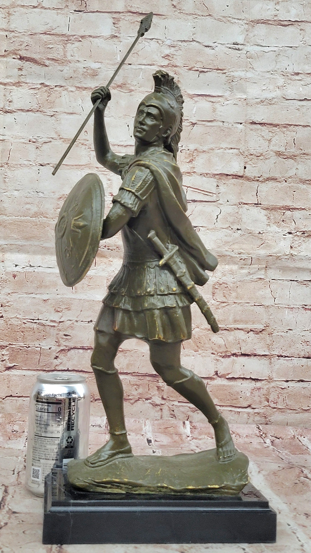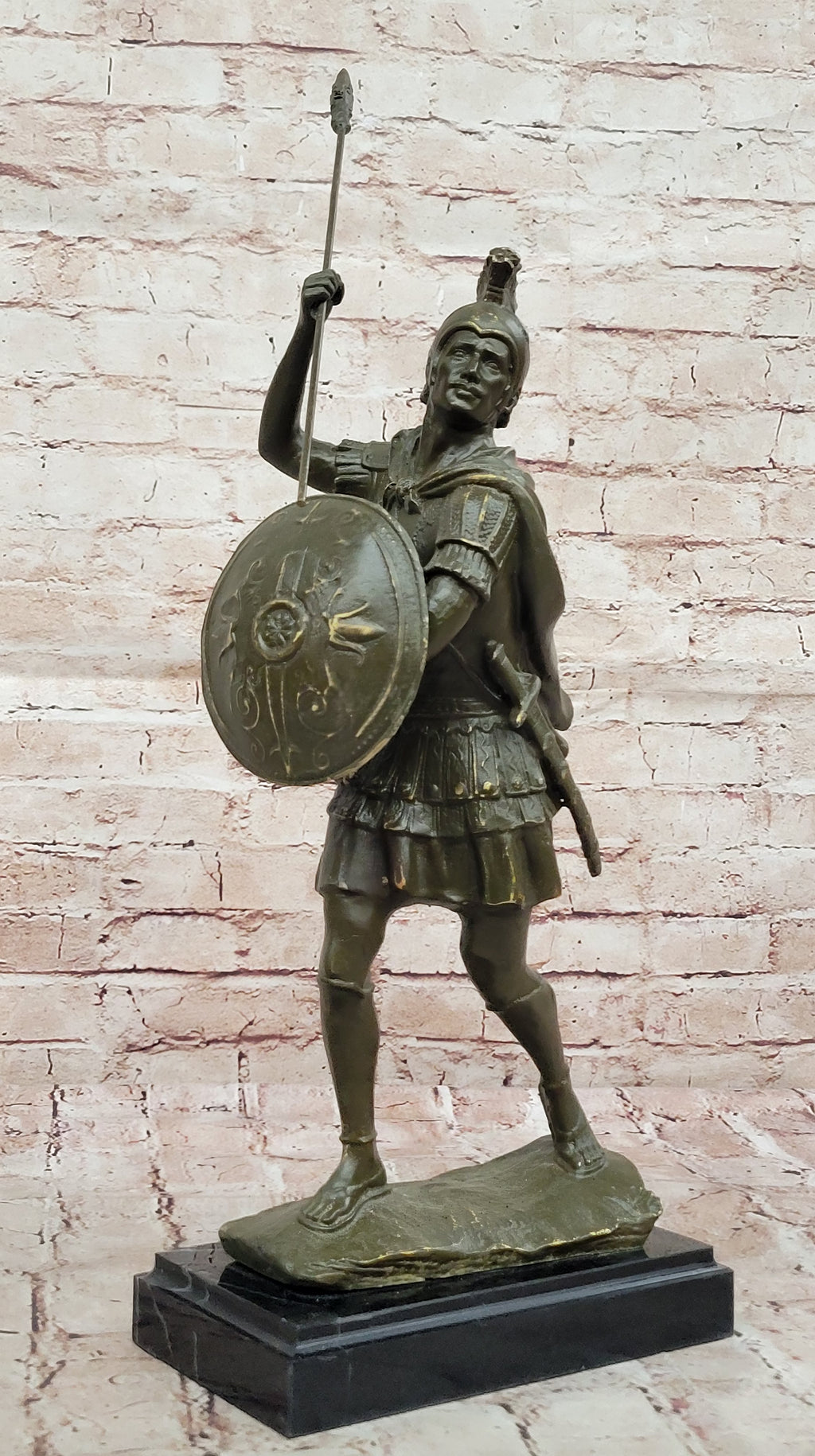 Handcrafted using the lost wax method, the sculpture is made of 100% genuine bronze and finished with a classic brown patina that brings out the fine detail—from the texture of the warrior's armor to the expressive posture of readiness and pride. It is mounted on a solid black marble base, giving it weight, stability, and elegance.