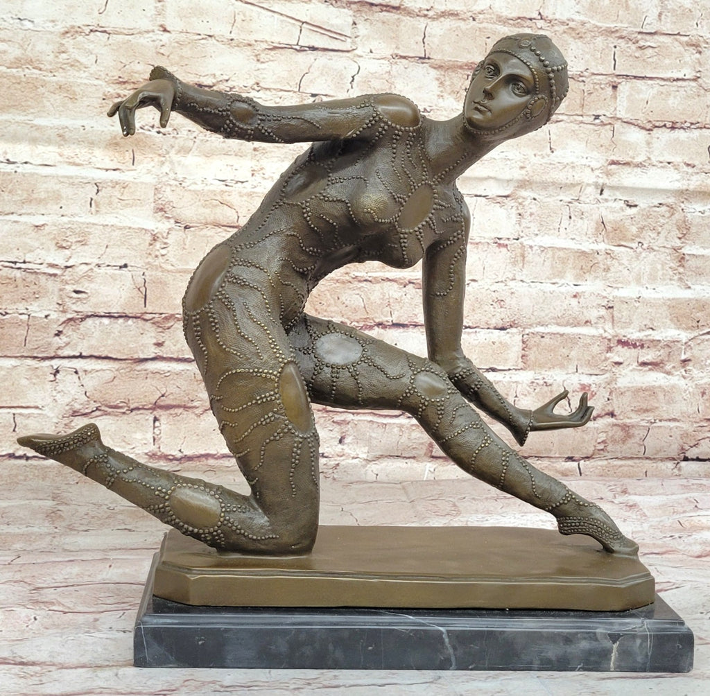 The artist's signature elegantly placed on the sculpture's base authenticates its origin and underscores its museum-quality status. This exquisite creation not only delights the eyes but also serves as a homage to the timeless allure and grace of Art Deco aesthetics, making it a cherished addition for admirers of fine art and craftsmanship.