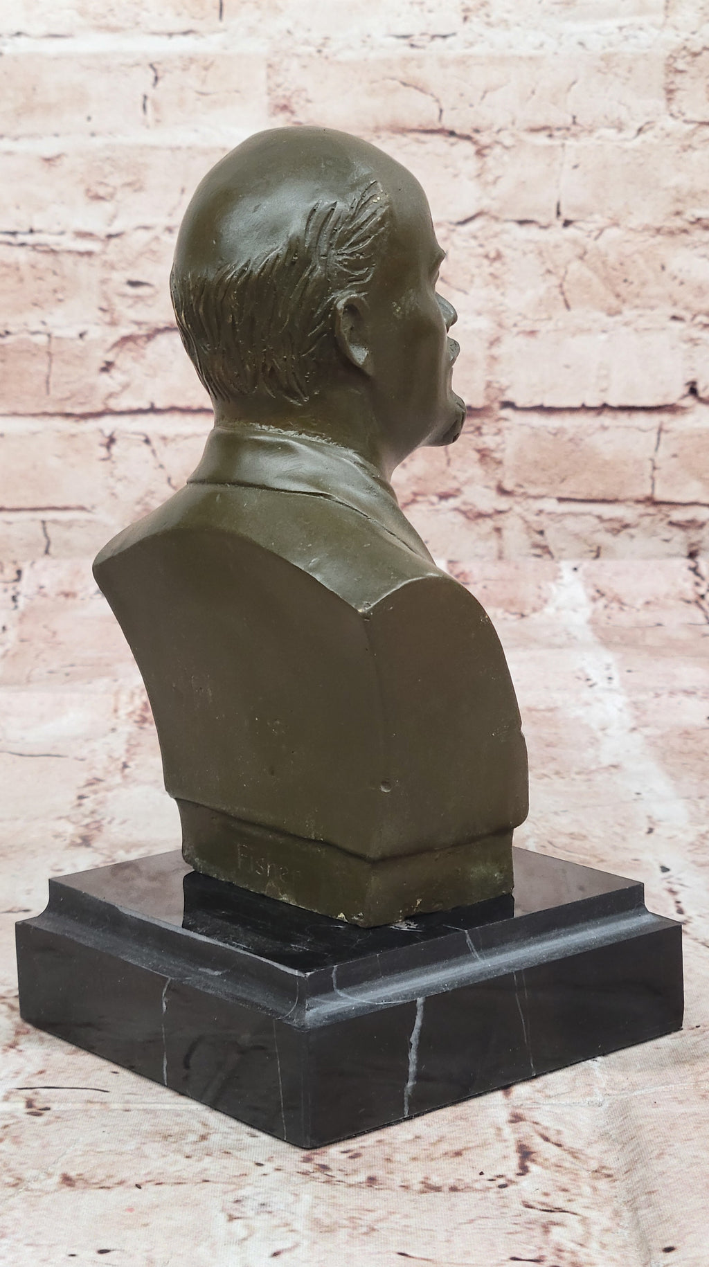 Handmade using the traditional lost wax method, the sculpture showcases exceptional craftsmanship and attention to detail. The dark brown patina enhances the depth and character of the piece, emphasizing the fine textures of Lenin’s facial features, beard, and formal attire. Fisher’s sculptural interpretation balances realism with artistic dignity, resulting in a refined and meaningful artwork.