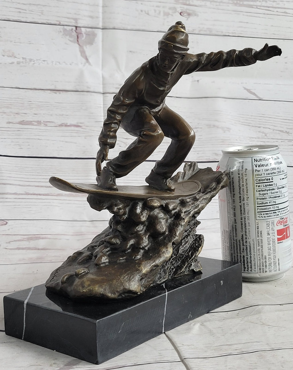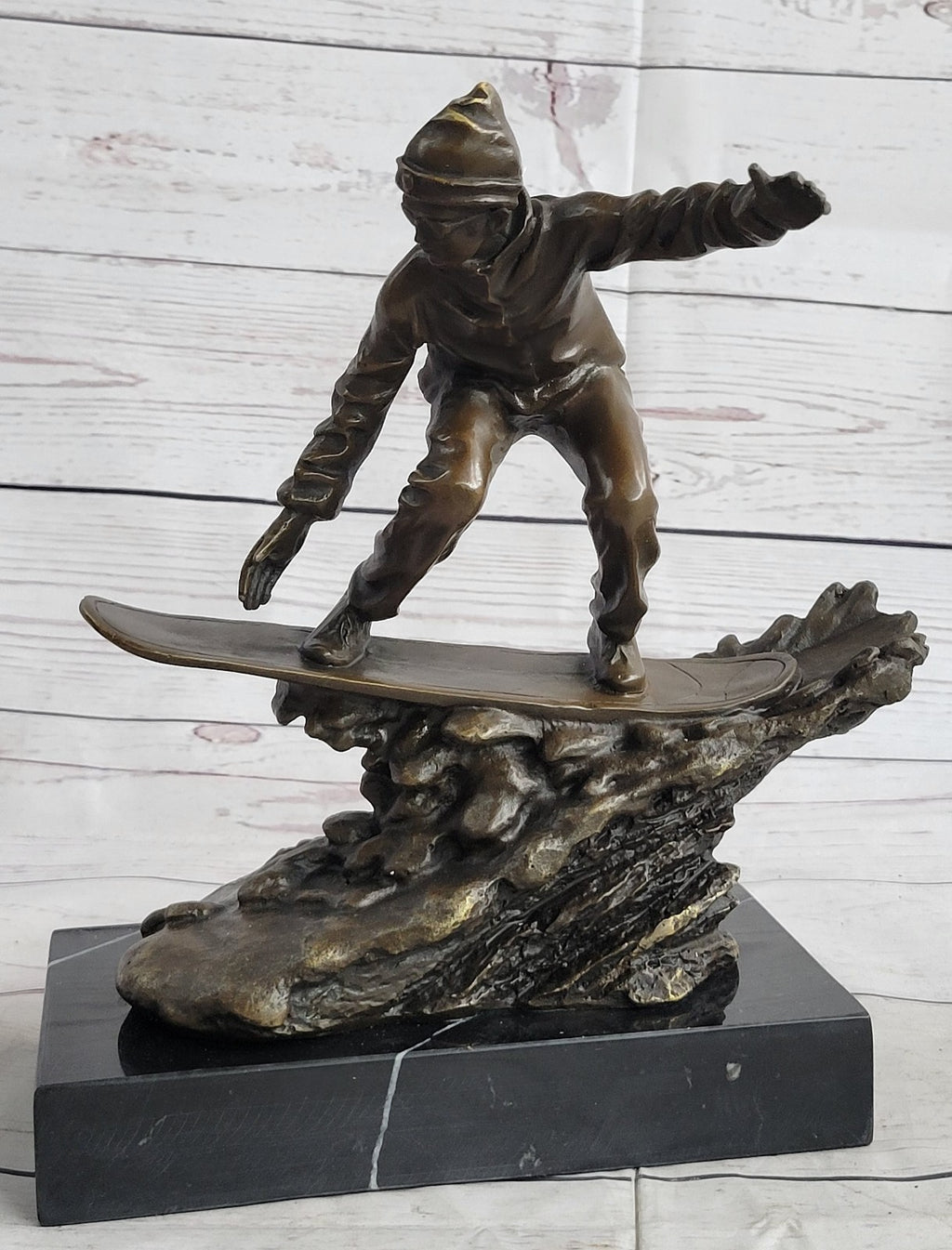 Elevate your passion for winter sports with this extraordinary bronze sculpture. Designed to encapsulate the essence of the snowboarding experience, it brings the energy and movement of the sport into a tangible form. The combination of the snowboarder's dynamic pose, the timeless material of bronze, and the mastery of the artist's hand creates a visually striking piece that exudes elegance and artistry. Embrace the allure of winter adventures and let this sculpture become a cherished symbol of your love for snowboarding. With its captivating presence and remarkable craftsmanship, this sculpture is a true testament to the spirit of the sport and a remarkable addition to any collection.