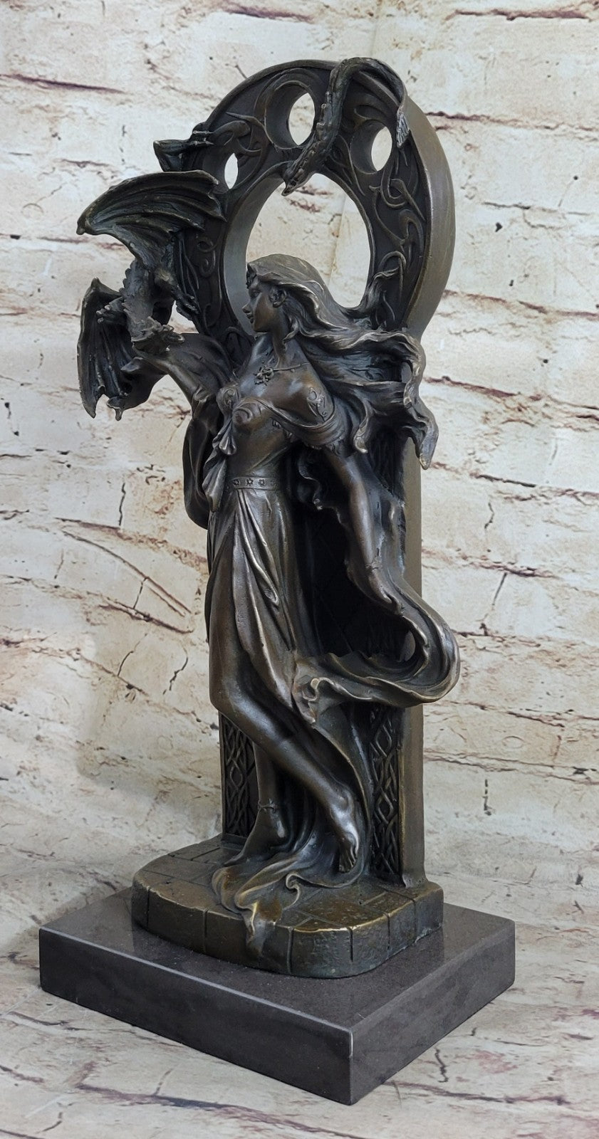 Indulge in the extraordinary world of bronze art with the "Dragon Guardian" sculpture. It is a testament to the harmonious balance between strength, beauty, and protection. This remarkable piece invites viewers to appreciate the timeless bond between humans and mythical creatures.