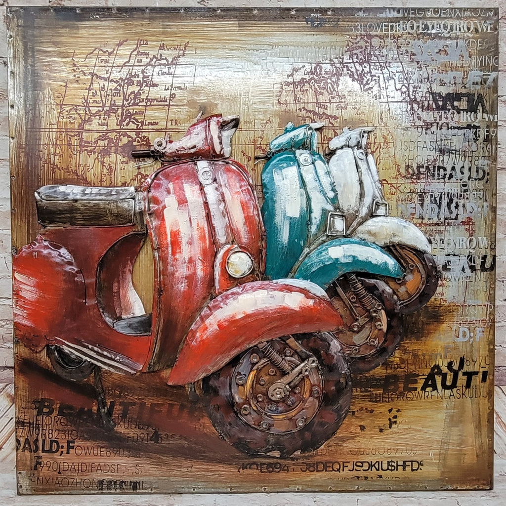 European 3D painting metal 32 x32 Inches Vespa Scooter Motor Bike Decor