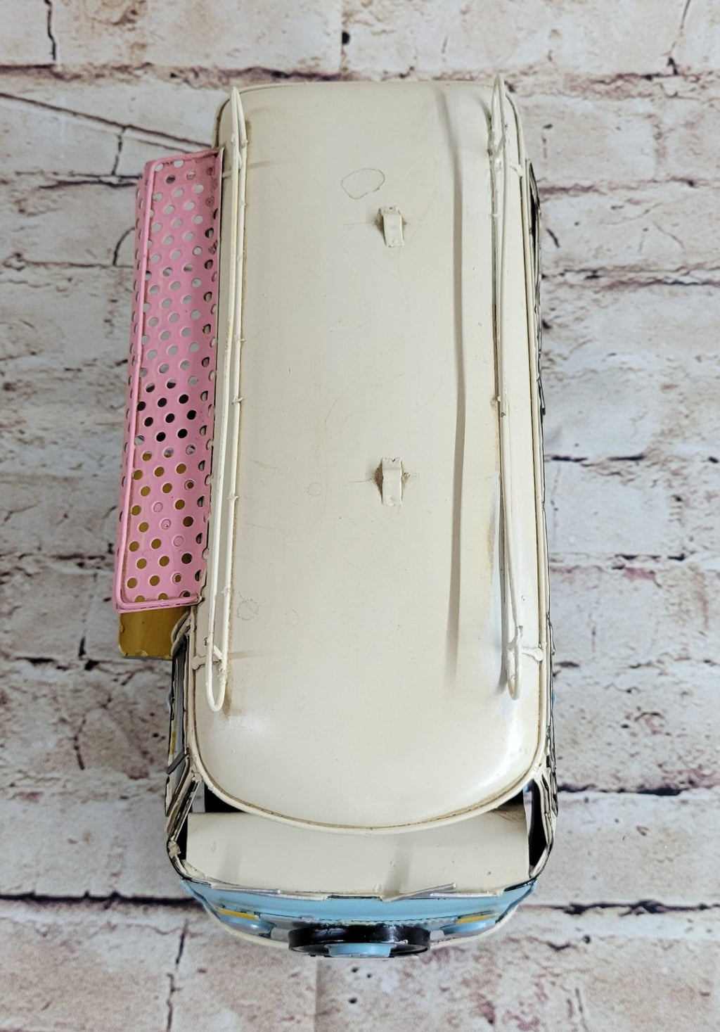 Decorate for any table, desk, or shelf in sporty fashion with Our Rustic 1966 US Ice Cream Truck Sculpture. Featuring a rustic iron frame, this charming vintage Classic Car includes a fine detail's. The Blue and White Exterior are finished in natural colors. For more than 20 years, European Finery has been providing high quality sculpture, accessories, and decor for any room for its customers' homes. Based in New York area, We grown to become one of the largest importers and wholesalers of home decor and hand made sculptures in the country. Whether you're looking for accent Sculpture, wall decor, vintage Toys, or just about any outdoor lifestyle sculpture , We Became a proven and trustworthy name that has become synonymous with superiority.