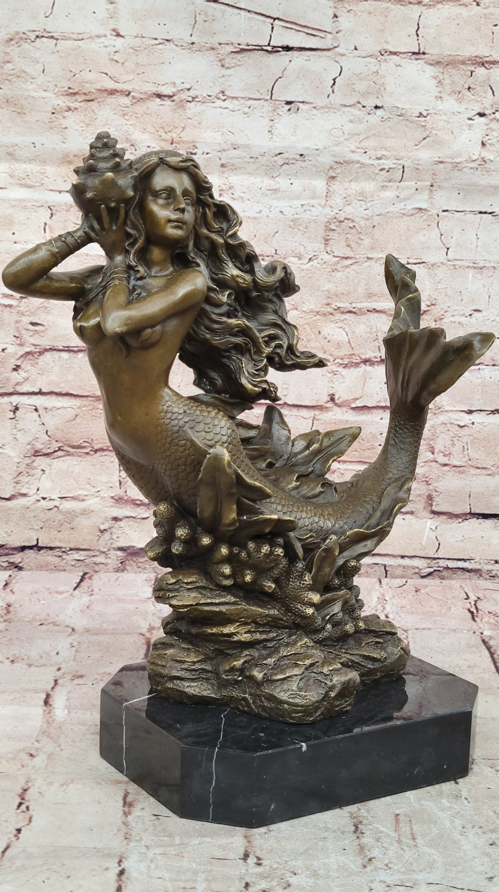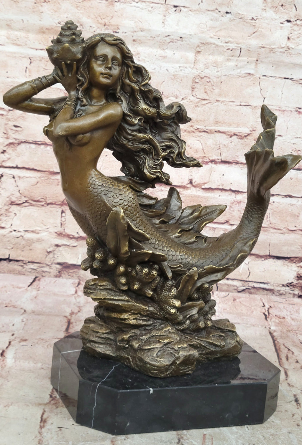 Handmade using the traditional lost wax casting method, this genuine bronze figurine is finished with a rich brown patina that enhances the contours and depth of the design. Every detail—from the flowing lines of her tail to the delicate curves of her body—is meticulously rendered, reflecting Milo’s mastery of sculptural technique and attention to artistic precision.