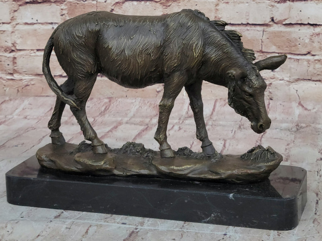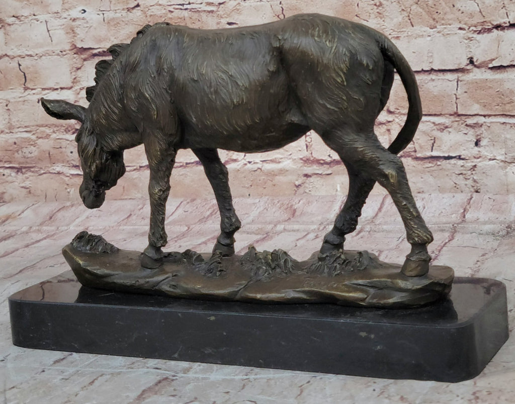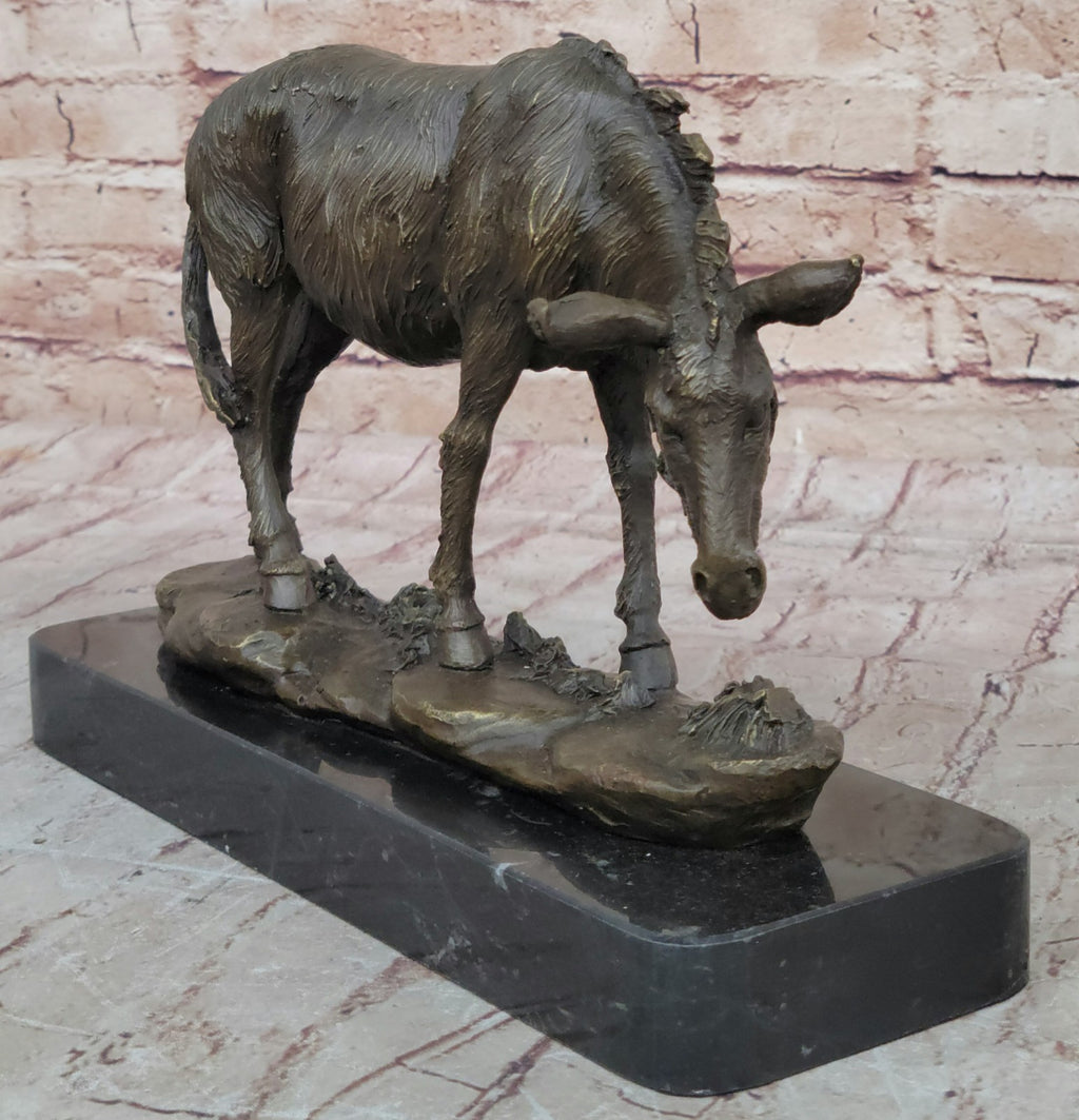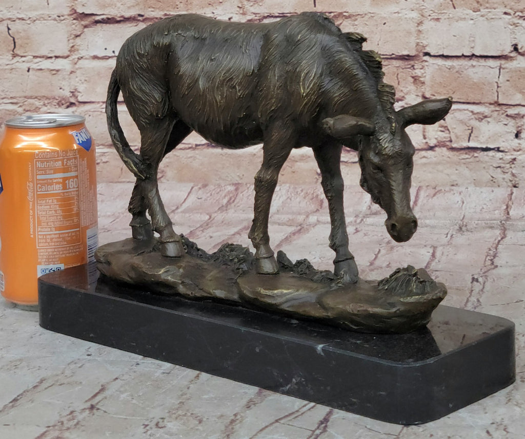 Immerse yourself in the rustic charm of this hot cast bronze sculpture featuring a donkey or mule. The artist has meticulously crafted this figurine with intricate details, capturing the essence of the animal's character. Handcrafted using the traditional lost wax method, each nuance of the sculpture reflects the artist's dedication to craftsmanship.