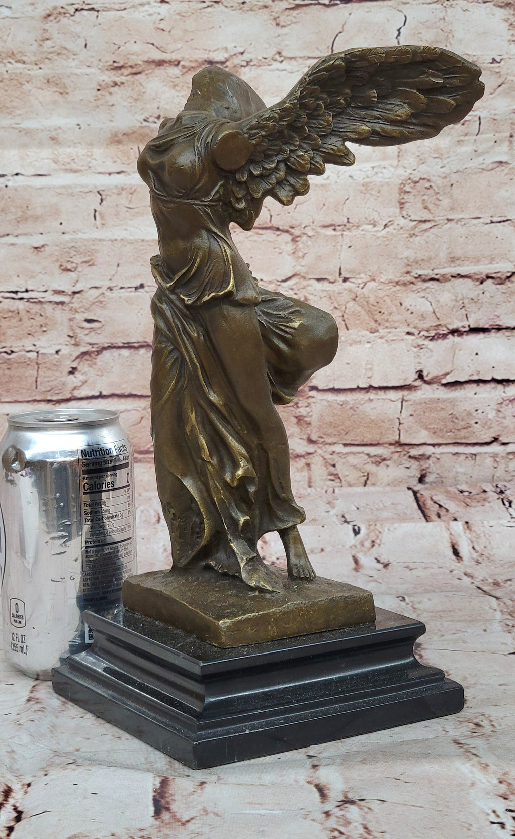 This faithful replica allows admirers of Greek mythology and ancient art to experience the beauty of the Winged Nike in their own space. Crafted using the lost-wax method, the sculpture captures the grace and elegance of the original masterpiece, while a rich brown patina finish adds depth and antiquity to its appearance. Standing proudly atop a black marble base, this magnificent piece is a striking addition to any collection or display.