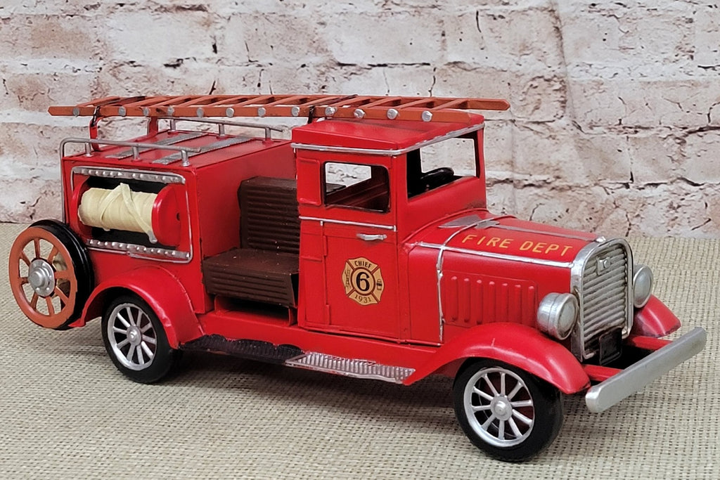 Decorate for any table, desk, or shelf in sporty fashion with Our Rustic 1931 So Prairie Fire Truck . Featuring a rustic iron frame, this charming vintage Classic Car includes a fine detail's. The Red metal Exterior are in natural colors. For more than 20 years, European Finery has been providing high quality sculpture, accessories, and decor for any room for its customers' homes. Based in New York area, we grown to become one of the largest importers and wholesalers of home decor and handmade sculptures in the country. Whether you're looking for accent Sculpture, wall decor, vintage Toys, or just about any outdoor lifestyle sculpture, We Became a proven and trustworthy name that has become synonymous with superiority.