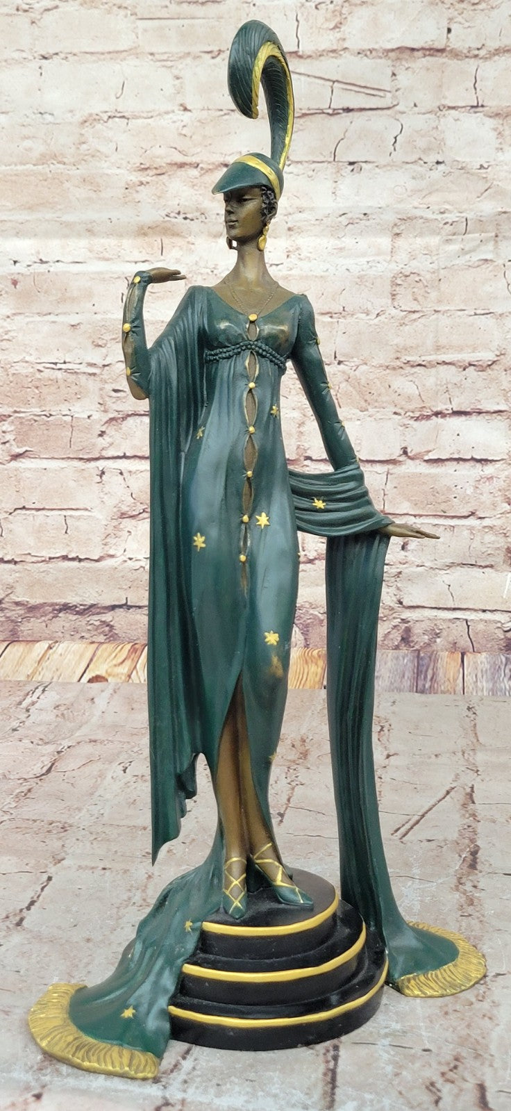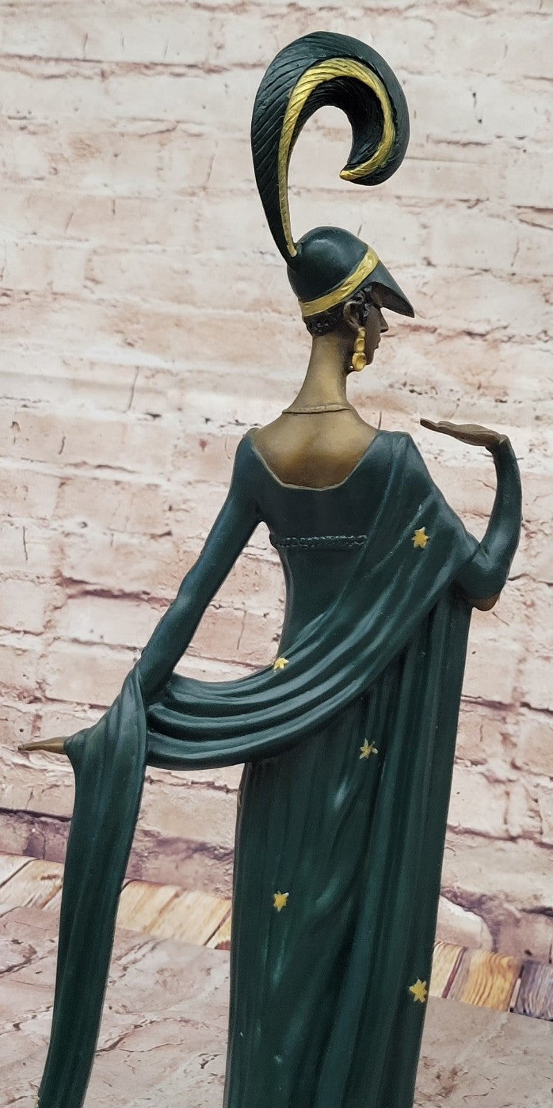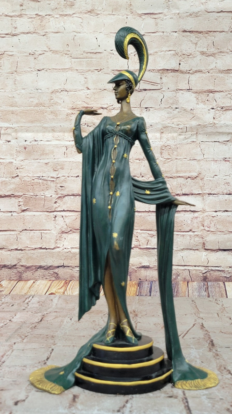 Crafted with meticulous attention to detail, this fashionista sculpture is a testament to the artistry and skill of its creator. Handmade from 100% bronze using the traditional "Lost Wax Method," she stands as a symbol of haute couture and sophistication. Mounted on a marble base for stability and elegance, she bears the signature of the renowned artist Erte, adding prestige and quality to this exquisite piece of art. Whether displayed in a gallery, fashion boutique, or private collection, she captivates onlookers with her undeniable charm and beauty, leaving a lasting impression of grace and refinement.