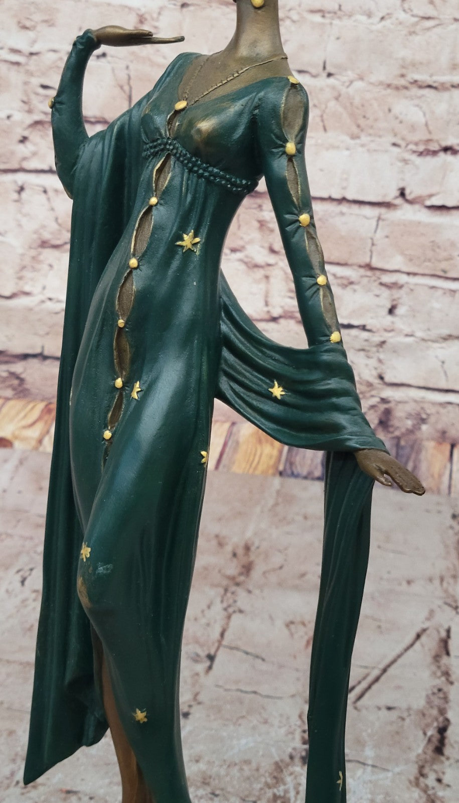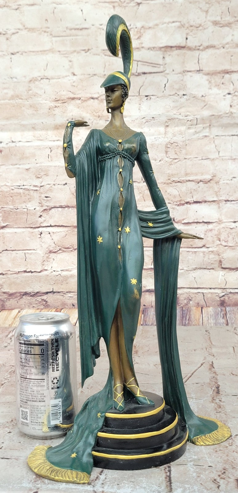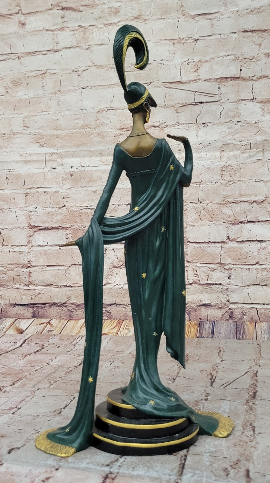 Crafted with meticulous attention to detail, this fashionista sculpture is a testament to the artistry and skill of its creator. Handmade from 100% bronze using the traditional "Lost Wax Method," she stands as a symbol of haute couture and sophistication. Mounted on a marble base for stability and elegance, she bears the signature of the renowned artist Erte, adding prestige and quality to this exquisite piece of art. Whether displayed in a gallery, fashion boutique, or private collection, she captivates onlookers with her undeniable charm and beauty, leaving a lasting impression of grace and refinement.