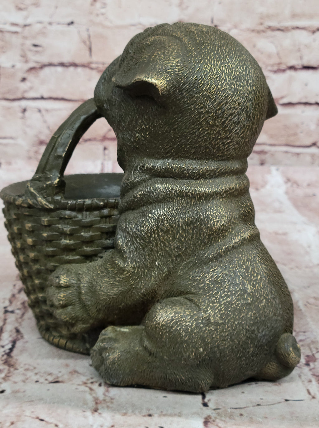 Expertly handmade using the time-honored lost wax method, this sculpture is crafted with exceptional attention to detail. From the natural posture of the puppy to the texture of the basket’s weave, every element is sculpted with care and precision. The rich brown patina gives the piece a classic, warm finish that enhances its artistic value and highlights the intricate craftsmanship.