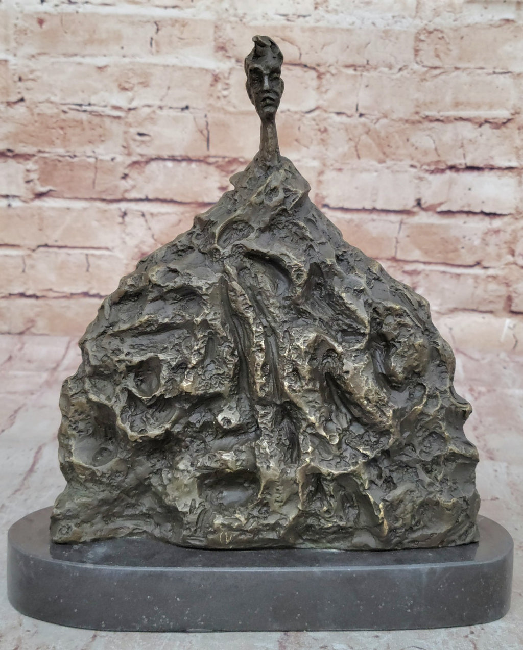 The sculpture serves as a catalyst for personal interpretation, encouraging viewers to explore their emotional responses and formulate ideas about the art. Its thought-provoking nature ensures it becomes a compelling conversation piece, sparking discussions about the artist's intent and the observer's individual perspectives. The thin head and neck on the elevated rock create a visual tension that captivates the imagination.