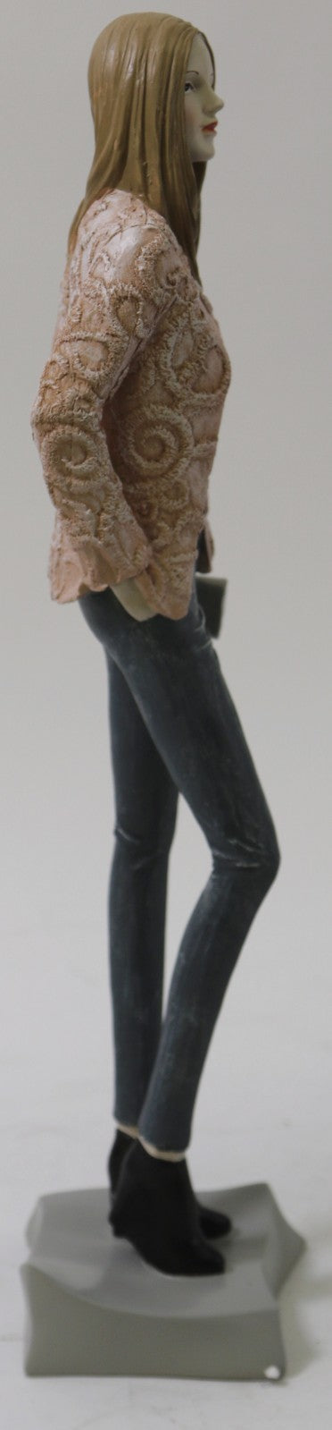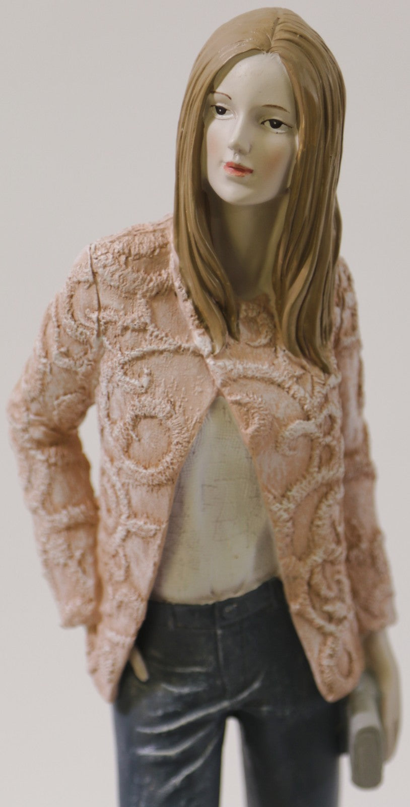 Polyresin is a resin compound generally used for statues, figurines, bobble heads and decorative furniture. It is a sturdy material that can be intricately molded, allowing a great level of detail with consistent texture. One form of polyresin often used is Alabastrite. It is a stone-based material, easy to sculpt, takes paint well, and has a similar appearance to porcelain and pottery.