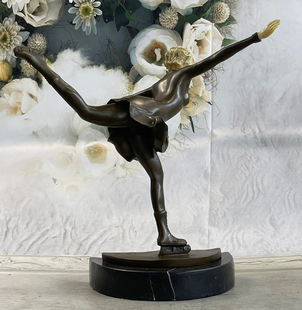 The sculpture, made of 100% bronze with the exception of the head and hands, which are crafted from resin, is a testament to the artist's exceptional talent. Her long, lean leg extends gracefully behind her, and her body exudes confidence, with her chest pushed out and her head slightly tilted forward to soak in the spotlight's glory. Not even a strand of her hair moves without her intention, highlighting her complete control over her performance.