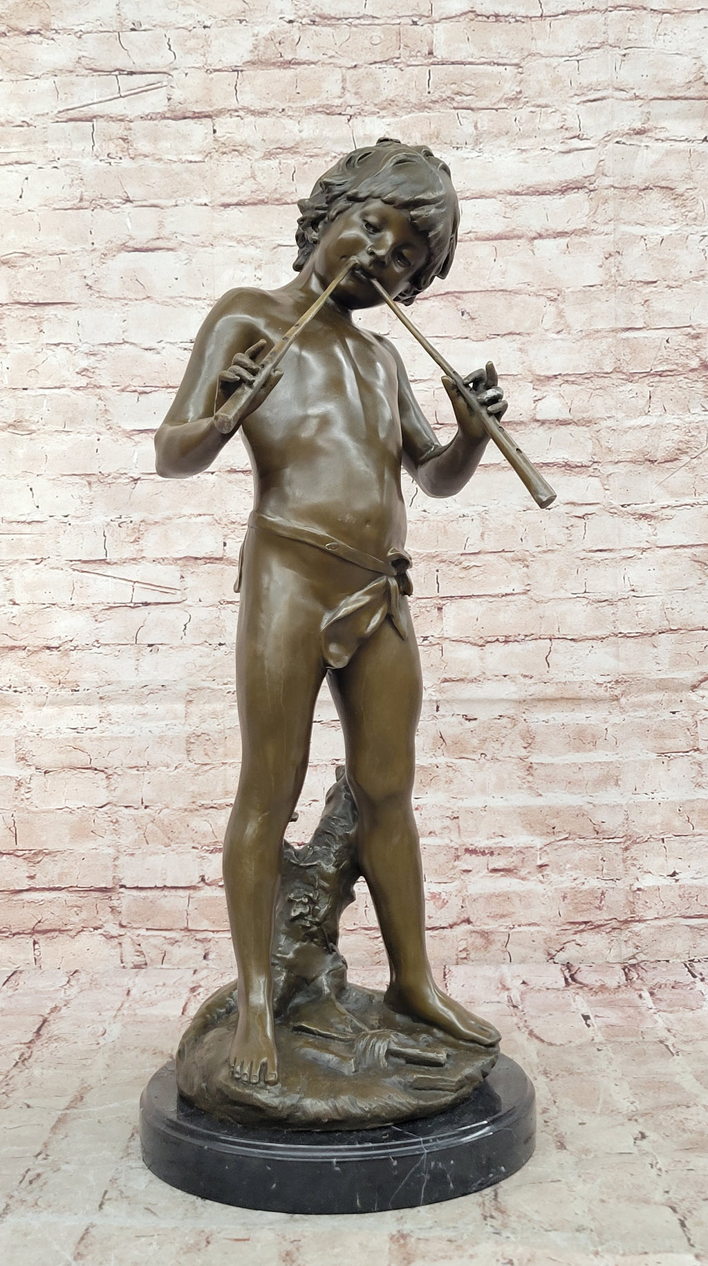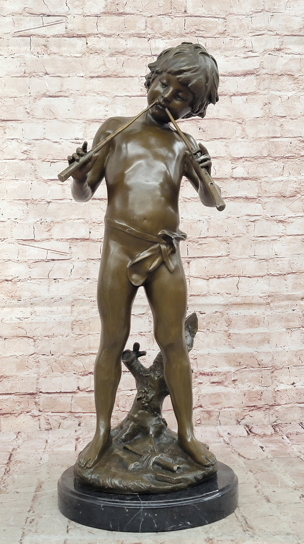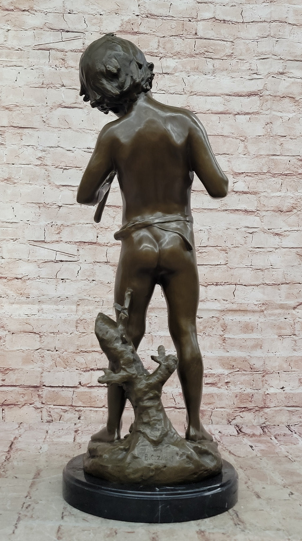 Crafted with meticulous attention to detail, this exquisite sculpture is a testament to the artisan's skill. Fashioned from 100% bronze and meticulously handmade, the brown patina adds depth and character to the artwork. Employing the "Lost Wax Method," the sculpture captures the essence of the moment, freezing it in time for eternity. Poised on a round marble base, the sculpture is not only a visual delight but also a tactile experience, and it bears the distinctive signature of its creator, artist B.C. Zhang, adding a personal touch to this evocative piece.