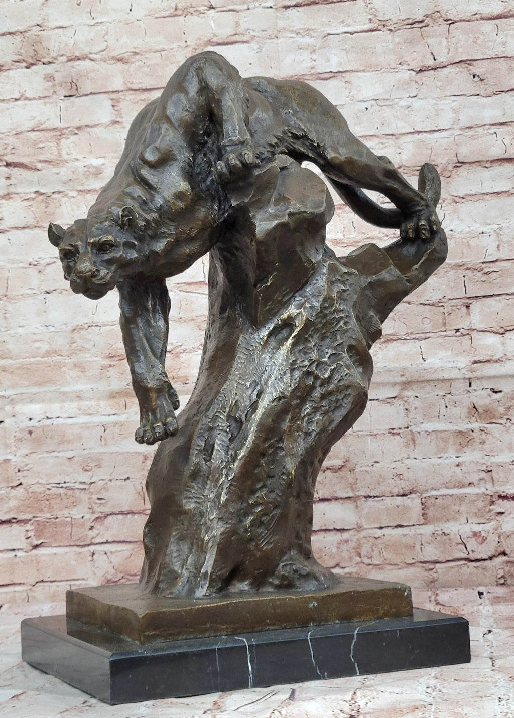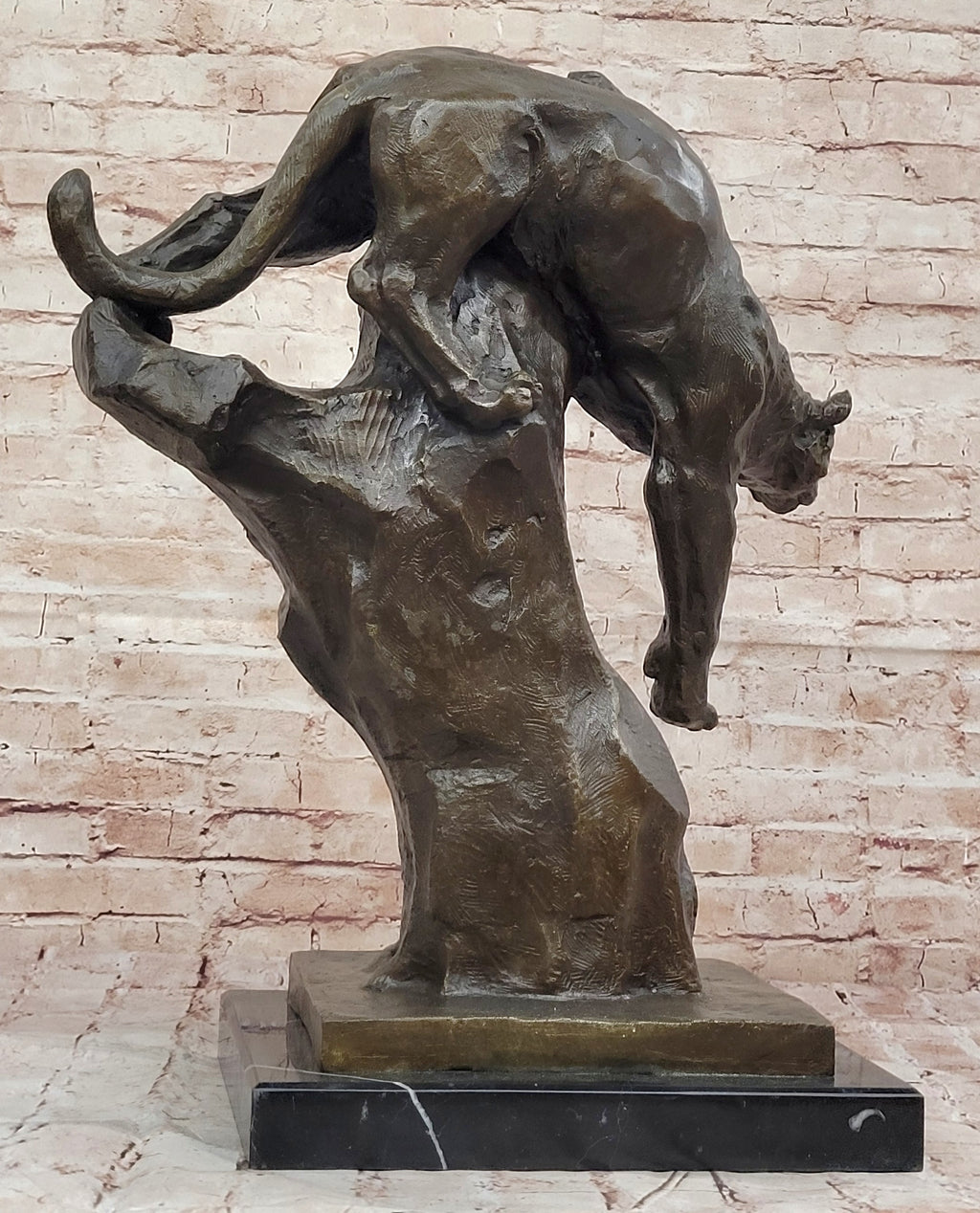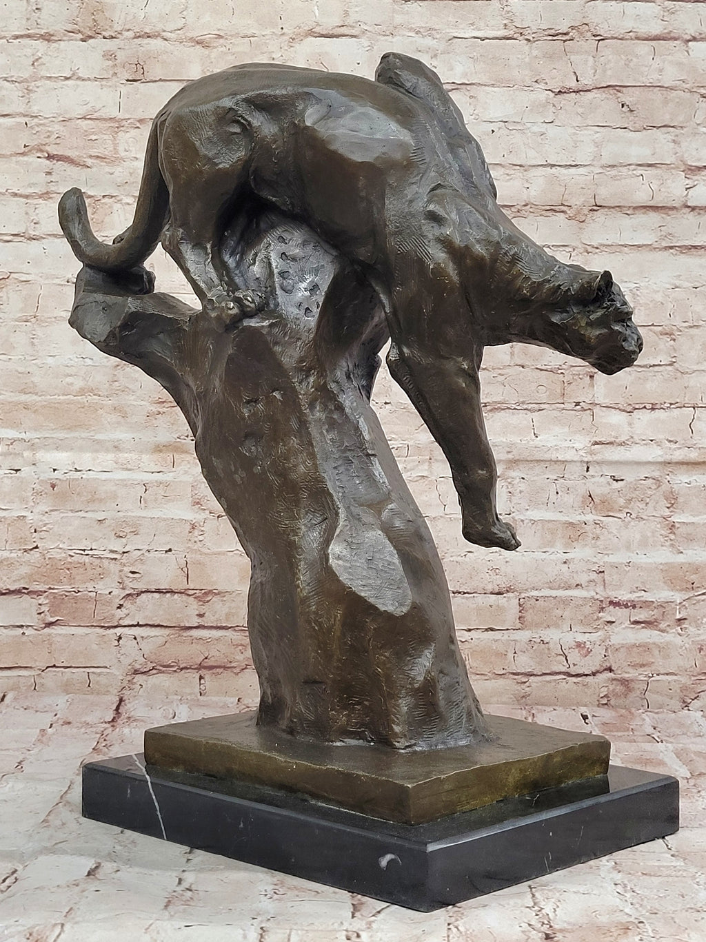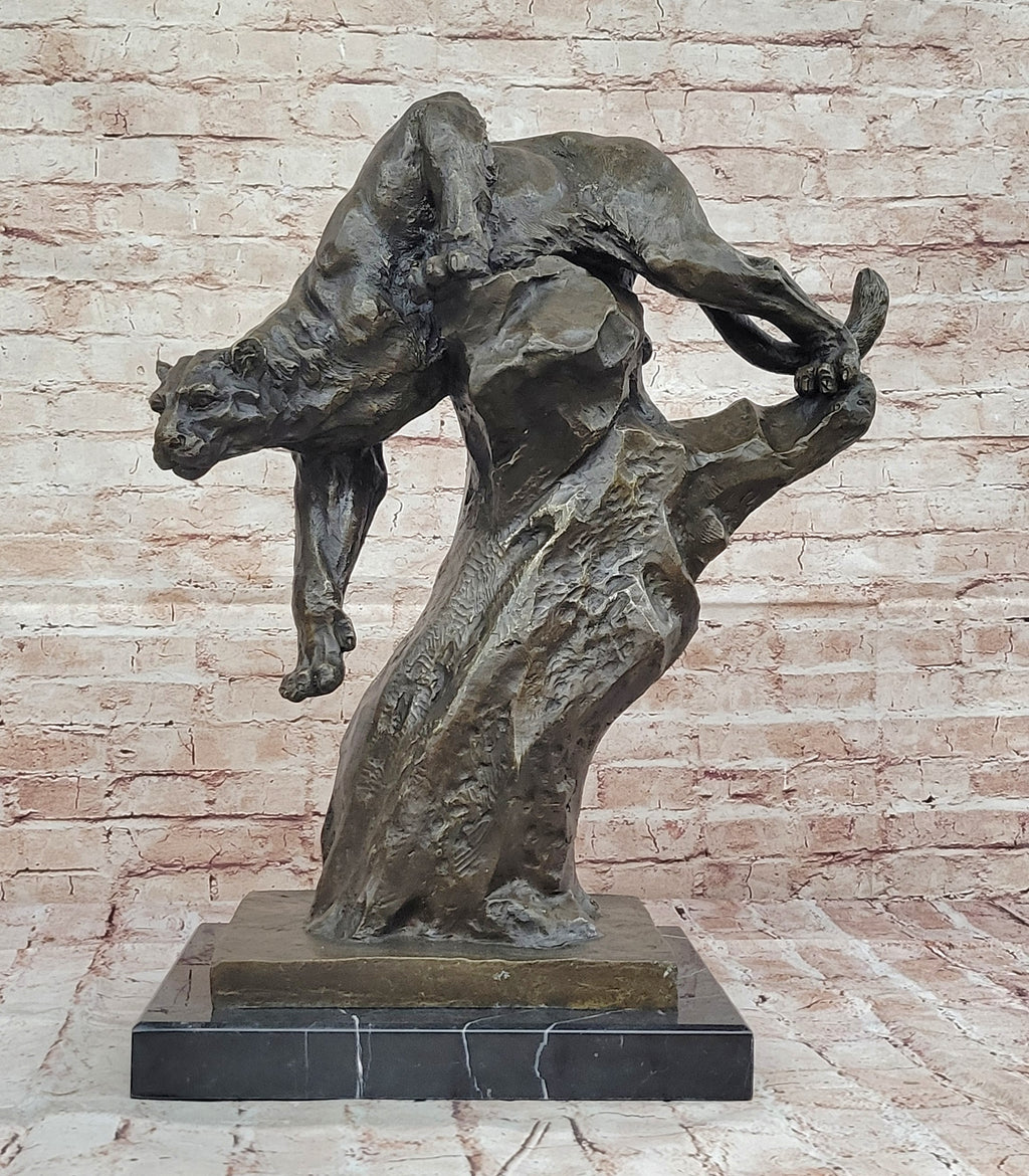 A striking centerpiece for any wildlife enthusiast or collector, this bronze leopard sculpture demands attention and admiration. Its portrayal of raw power and survival instinct serves as a captivating reminder of the untamed beauty found in the animal kingdom. The combination of bronze craftsmanship, intricate detailing, and the artist's signature ensures that this sculpture is a truly remarkable and authentic representation of the leopard's wild nature.