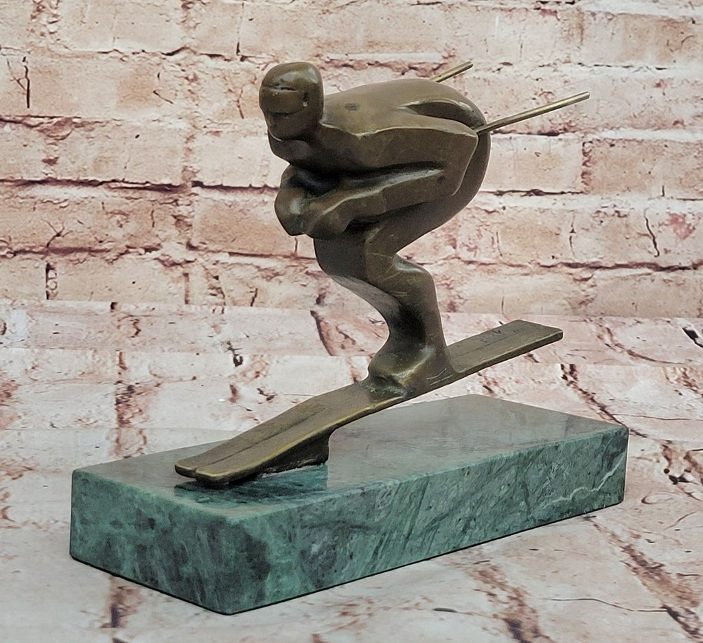 Crafted with meticulous attention to detail, this bronze sculpture captures the dynamic energy and fluidity of the skier's movements with unparalleled precision. Utilizing the time-honored "Lost Wax Method," the sculpture boasts a rich brown patina finish that accentuates the textures and contours of the skier's form. Mounted on a sturdy marble base, the sculpture stands as a testament to the artist's skill and the skier's passion for the sport.