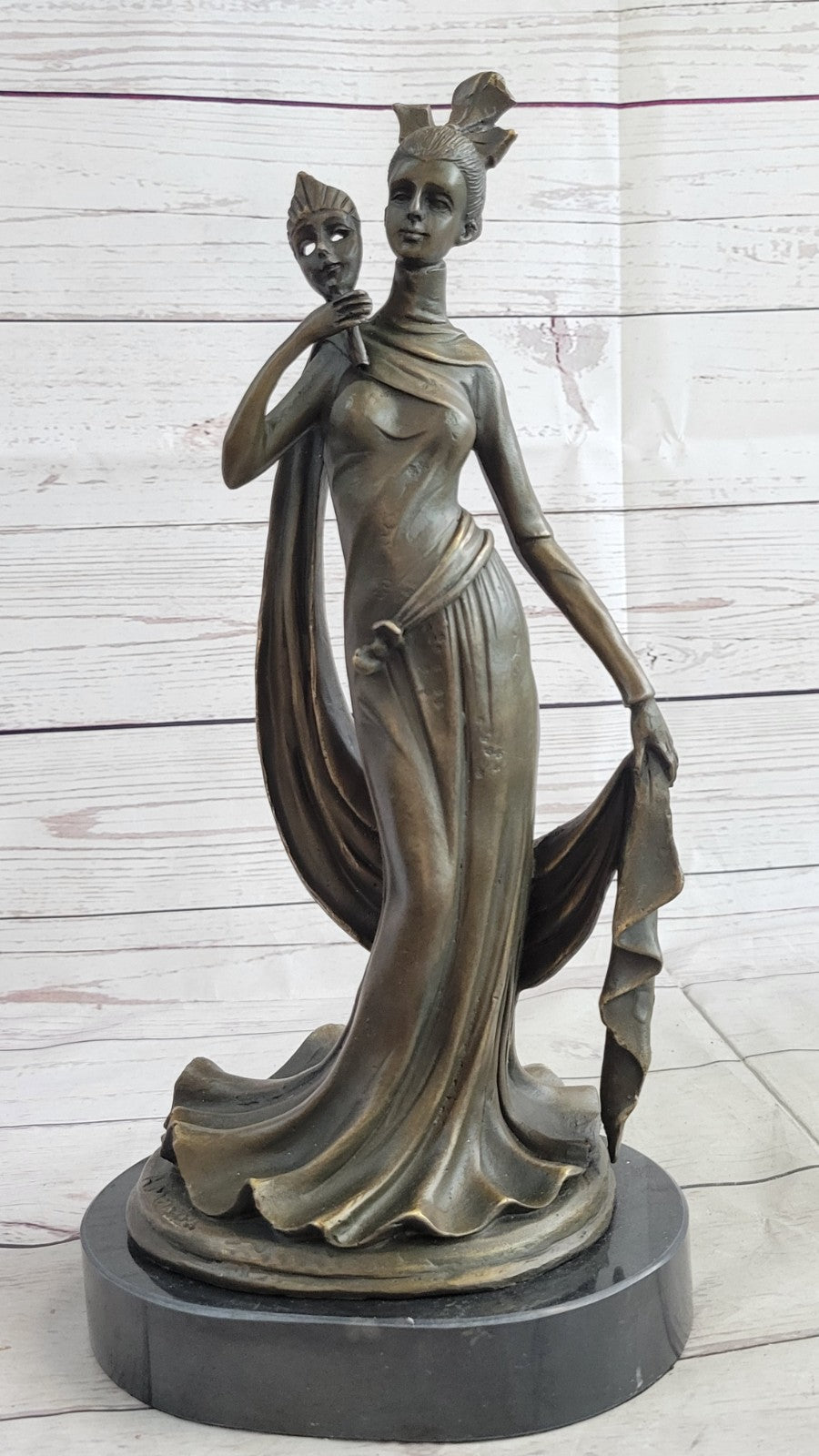 Handcrafted using the ancient Lost Wax Method, this 100% genuine bronze sculpture features a rich brown patina that enhances its depth and beauty. It is mounted on a polished black marble base and bears the signature of A. Moreau, affirming its quality and fine artistic heritage. This captivating piece perfectly blends history, art, and timeless sophistication.