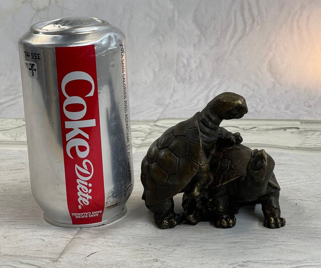 This piece not only embodies the virtues associated with the tortoise but also serves as a beautiful representation of friendship and reliance. It reminds us of the special bond between individuals who provide support and strength to one another. The intricate details of this sculpture bring the turtles to life, showcasing the skill and artistry of the sculptor. Crafted using the ancient technique of the "Lost Wax Method," this figurine carries the mark of quality and authenticity.
