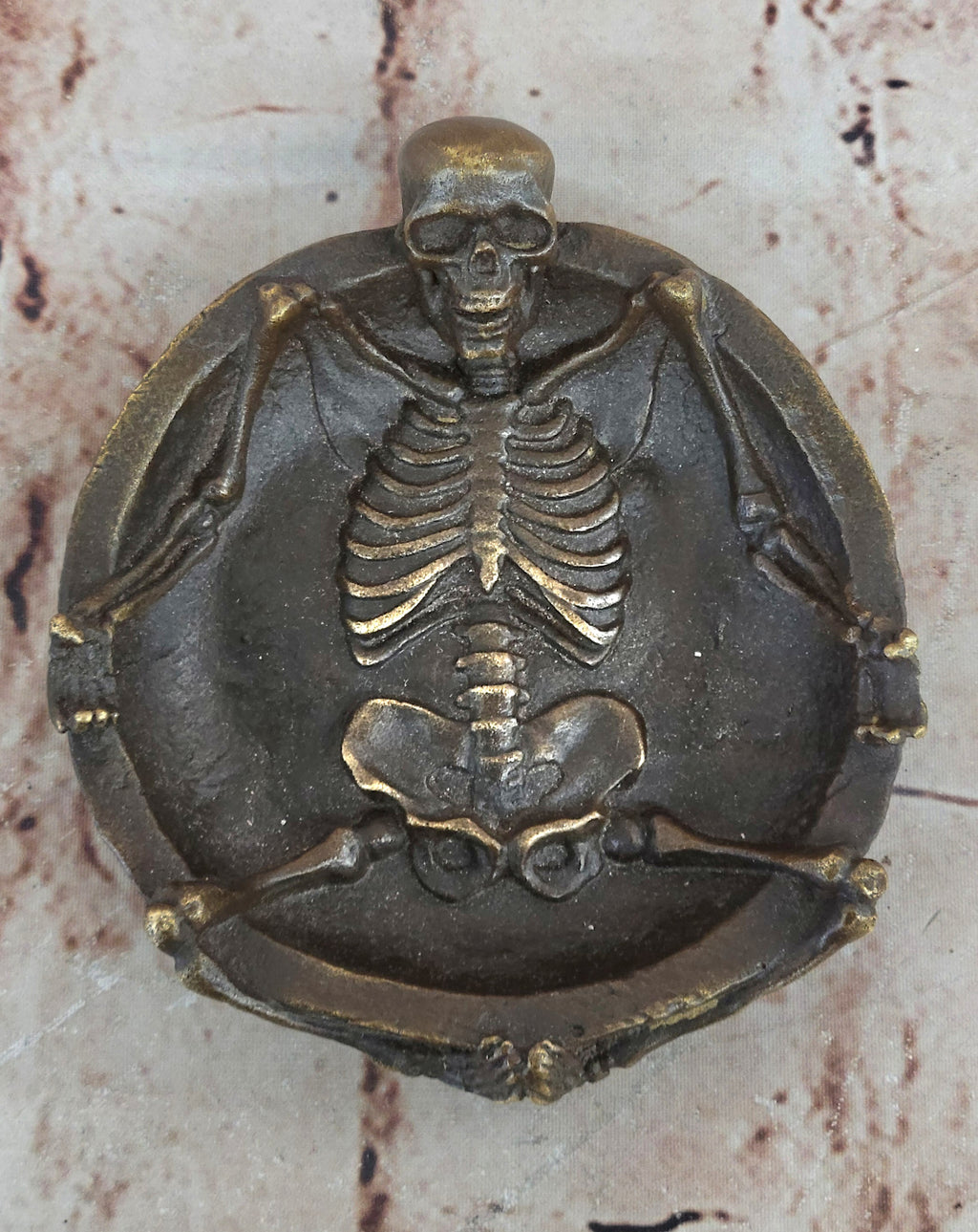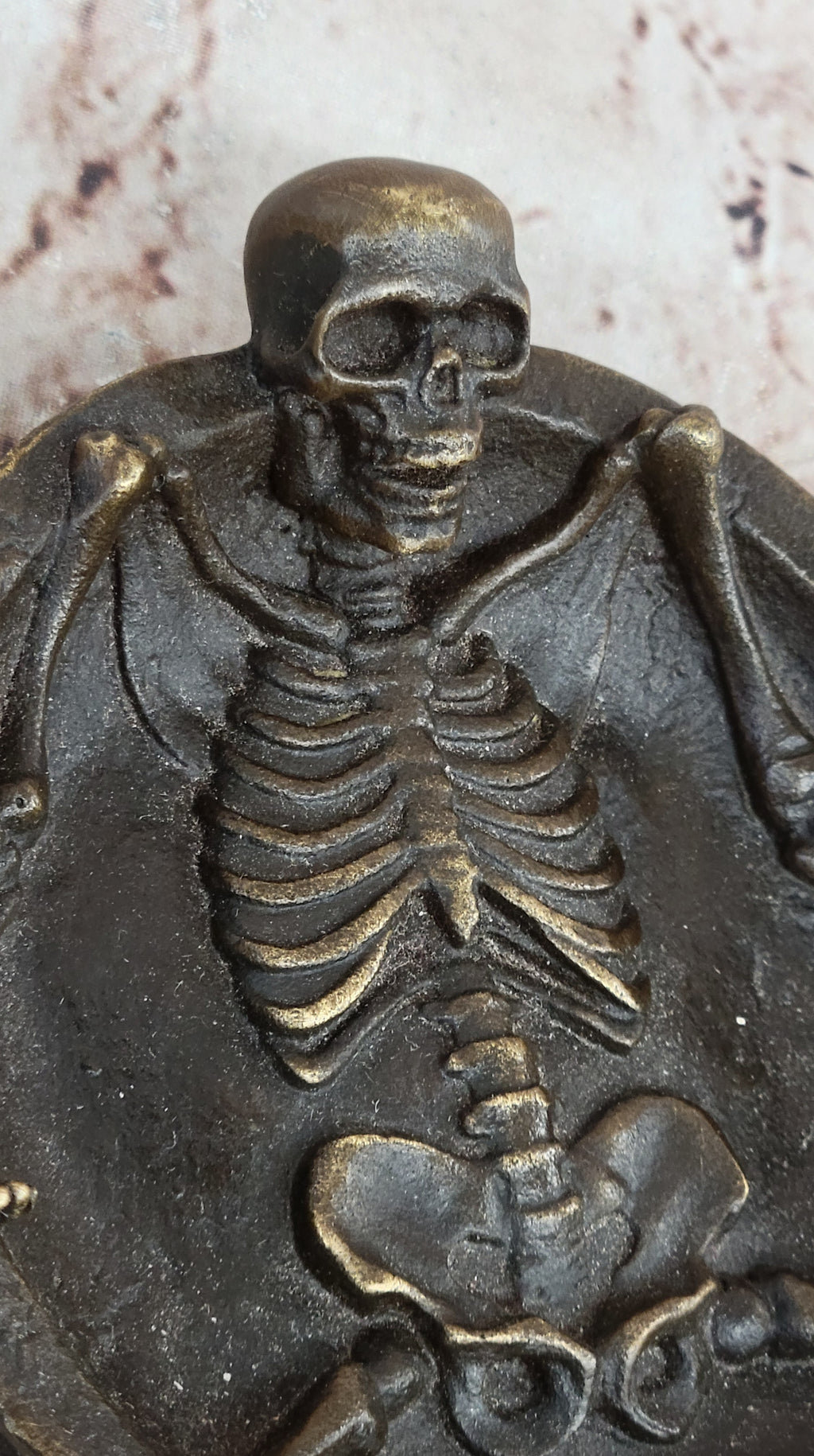 Elevate the ambiance of any room or event from the mundane to the extraordinary with the addition of this unique and striking bronze sculpture. The skeleton's unconventional yet engaging design creates an intriguing focal point, stimulating conversations and provoking contemplation. Crafted entirely from bronze using the time-honored lost wax method, this sculpture embodies the dedication and skill of the artist, ensuring its enduring quality and artistic integrity.