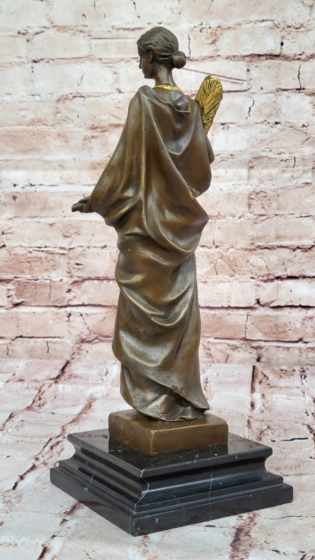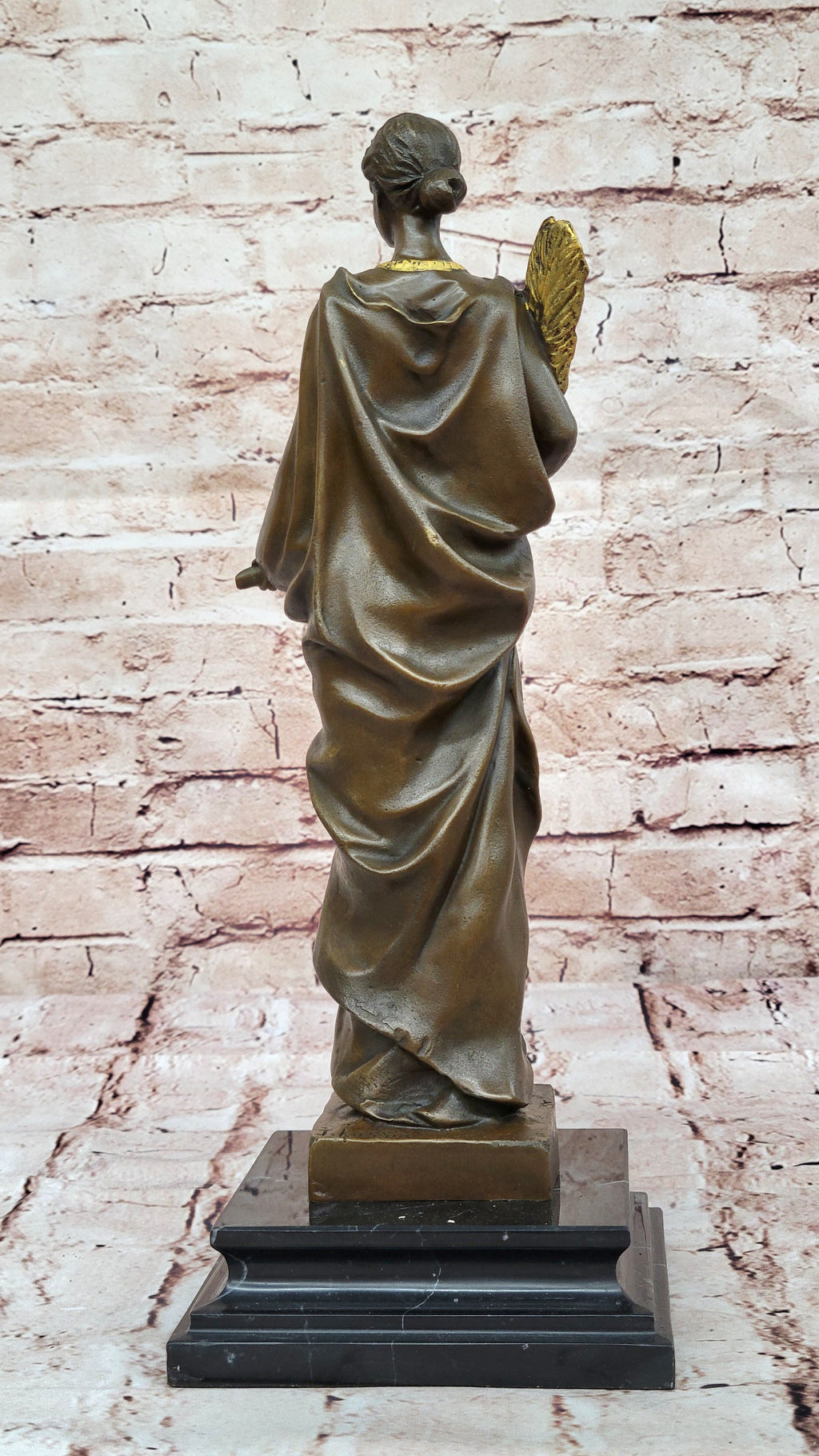 A smaller recast of the original "Peace" sculpture, this piece carries historical significance, as similar versions were produced during World War I. The intricate details bring depth to the sculpture, from the delicate folds of her garments to the fine textures of the sword and lantern, enhancing its artistic and symbolic value.