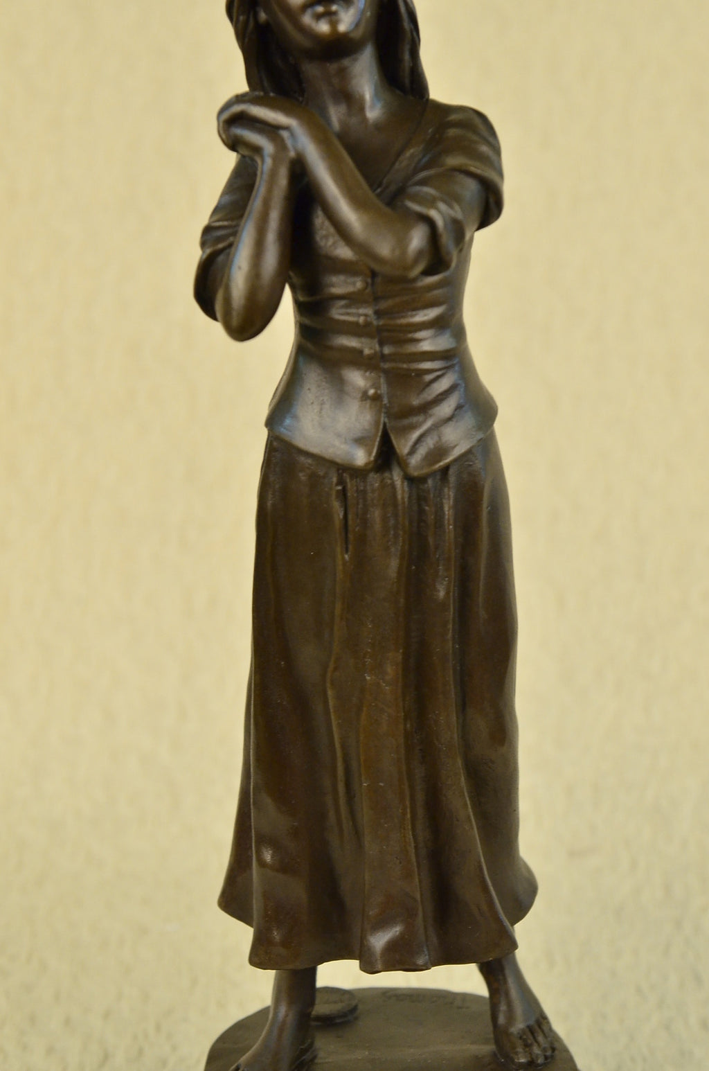 This Woman Is A Missionary. Her Charitable Acts And Altruistic Spirit Have Drawn Her To A Life Of Service. She Is Dressed Modestly In A Blouse And Long Skirt. Her Feet Are Bare. She Clasps Her Hands And Clutches Them To Her Chest In A Grateful Prayer. This Wonderful Piece Was Crafted Using The Lost Wax Method. It Rests On A Black Marble Base. It Is Signed By The Artist Thomas.