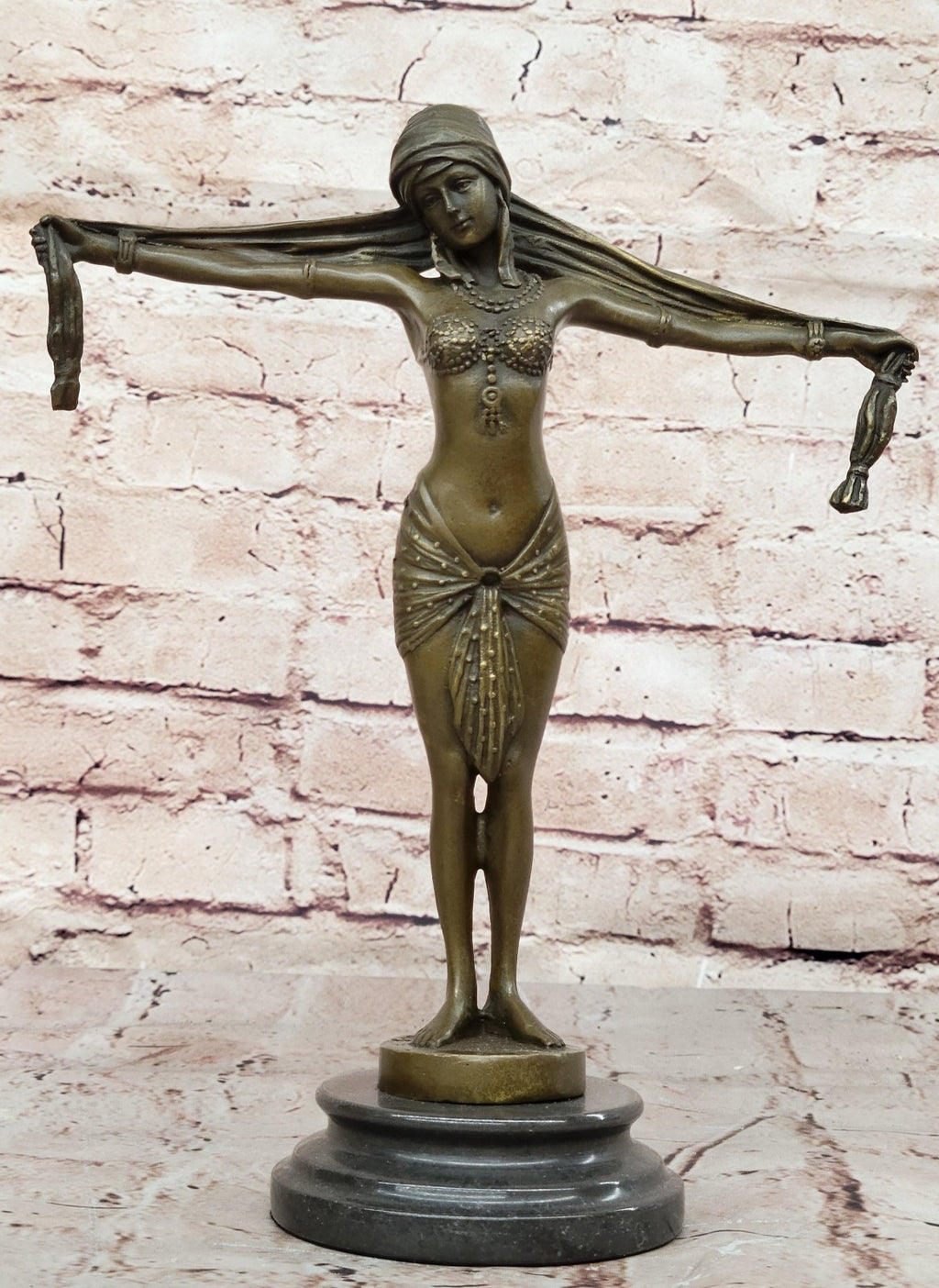 Embrace the allure and timeless beauty of this bronze belly dancer sculpture, an embodiment of artistic brilliance and aesthetic excellence.
