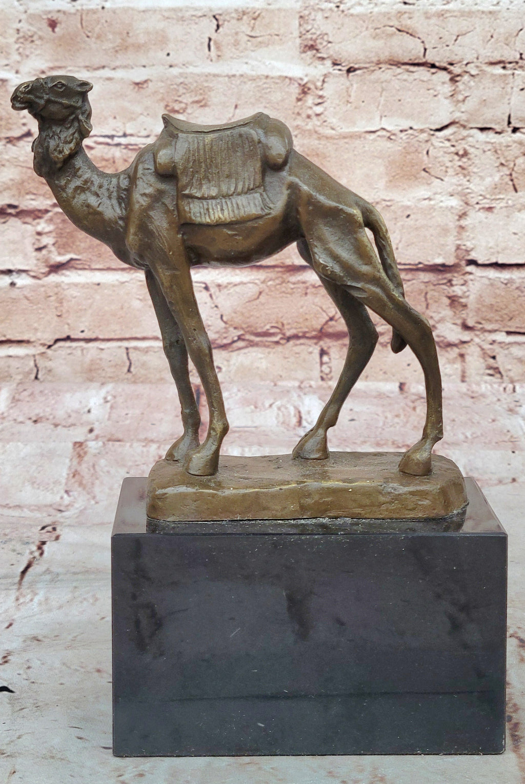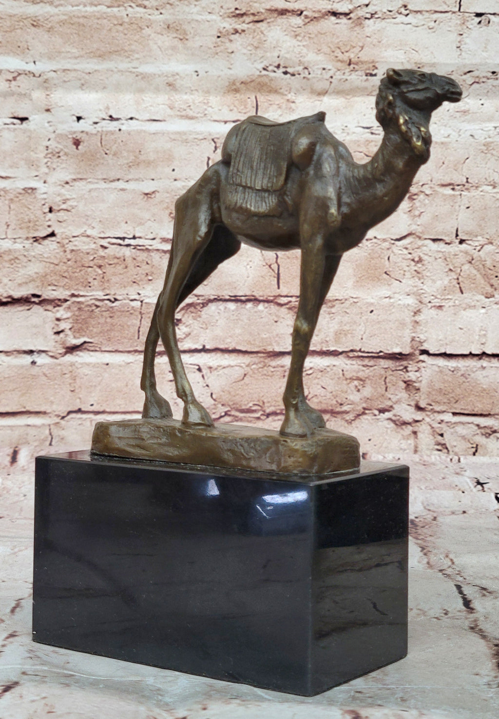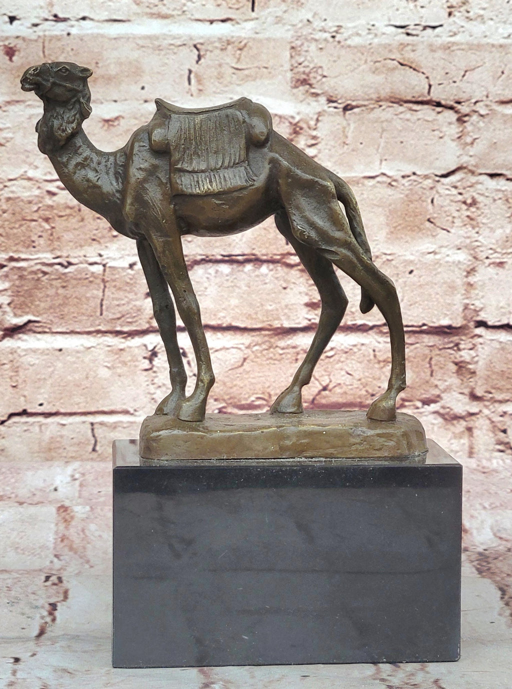 Crafted using the ancient "Lost Wax Method," this bronze sculpture is a testament to the artist's skill and dedication. The brown patina finish adds depth and character to the piece, enhancing the texture and highlighting the camel's features. Mounted on a marble base, this sculpture is a true work of art that will make a striking addition to any collection or decor.