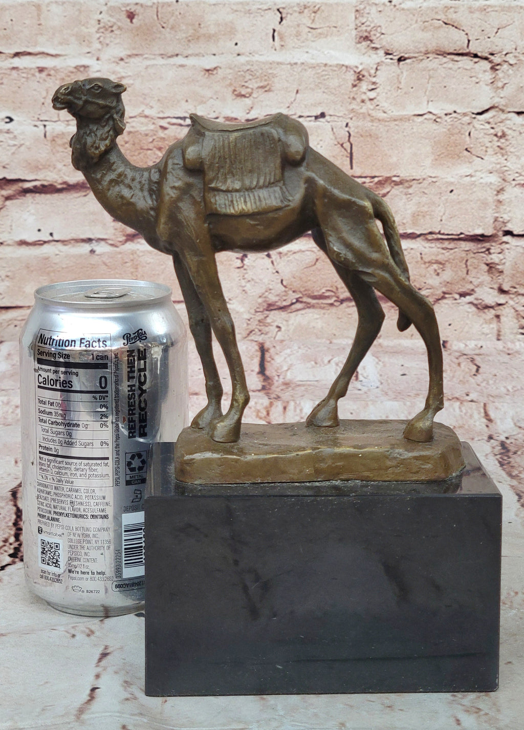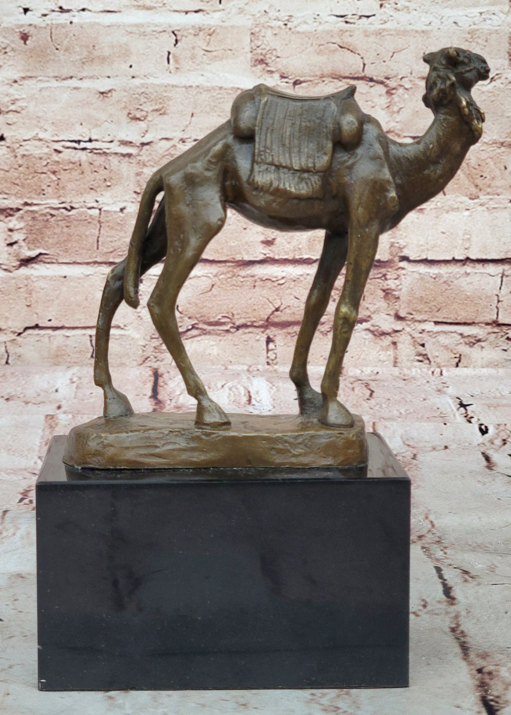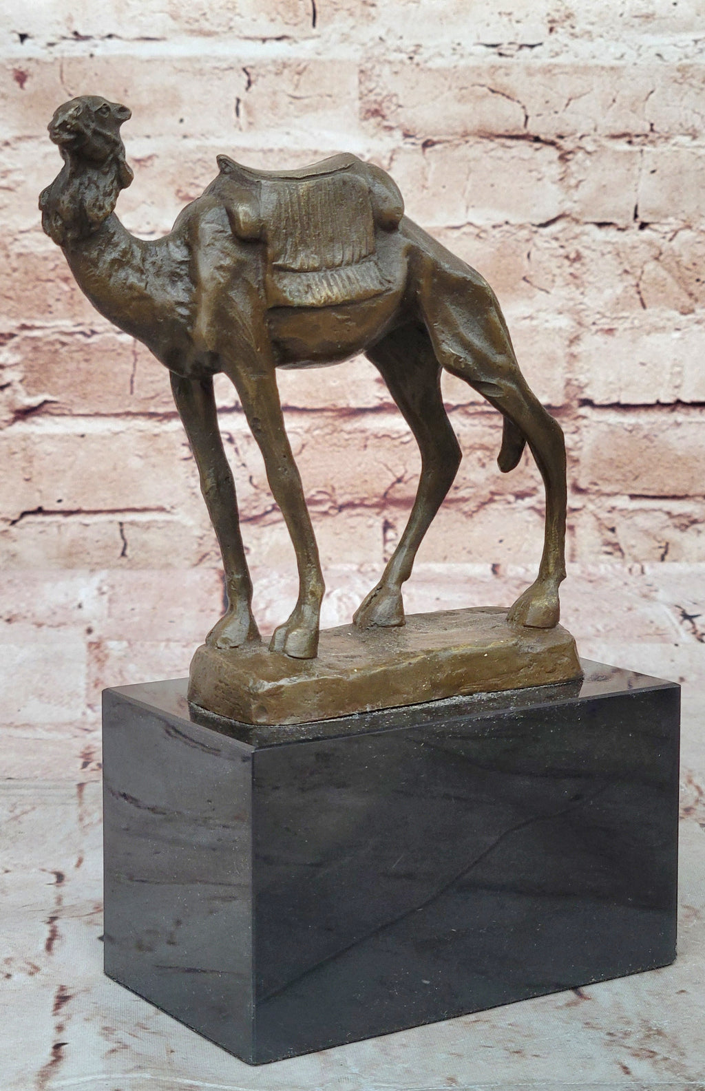 Crafted using the ancient "Lost Wax Method," this bronze sculpture is a testament to the artist's skill and dedication. The brown patina finish adds depth and character to the piece, enhancing the texture and highlighting the camel's features. Mounted on a marble base, this sculpture is a true work of art that will make a striking addition to any collection or decor.