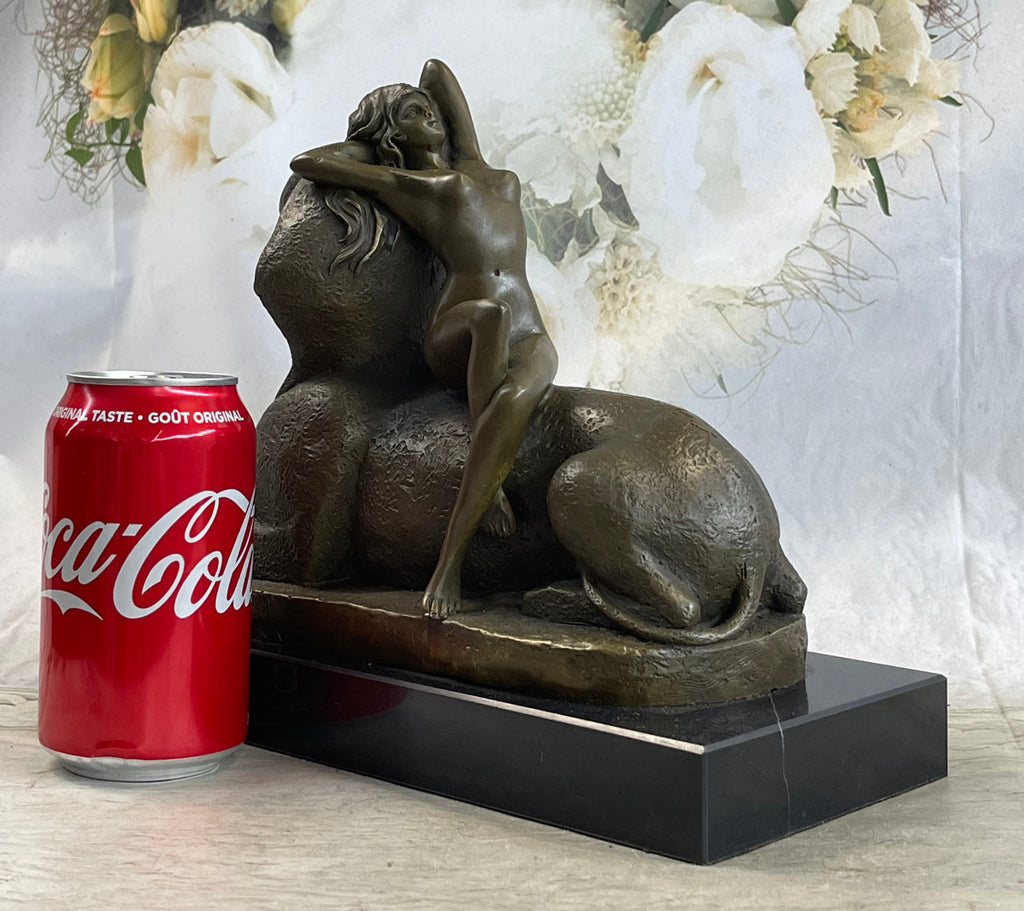 With remarkable attention to detail, the sculpture captures the fluid beauty of the female form and the symbolic power of the sphinx. The folds of the drapery, the delicate posture, and the serene expression on the woman’s face showcase the artist’s skill and his embrace of Art Nouveau ideals. This work exemplifies the era’s love for myth, symbolism, and the integration of historical themes into decorative art.