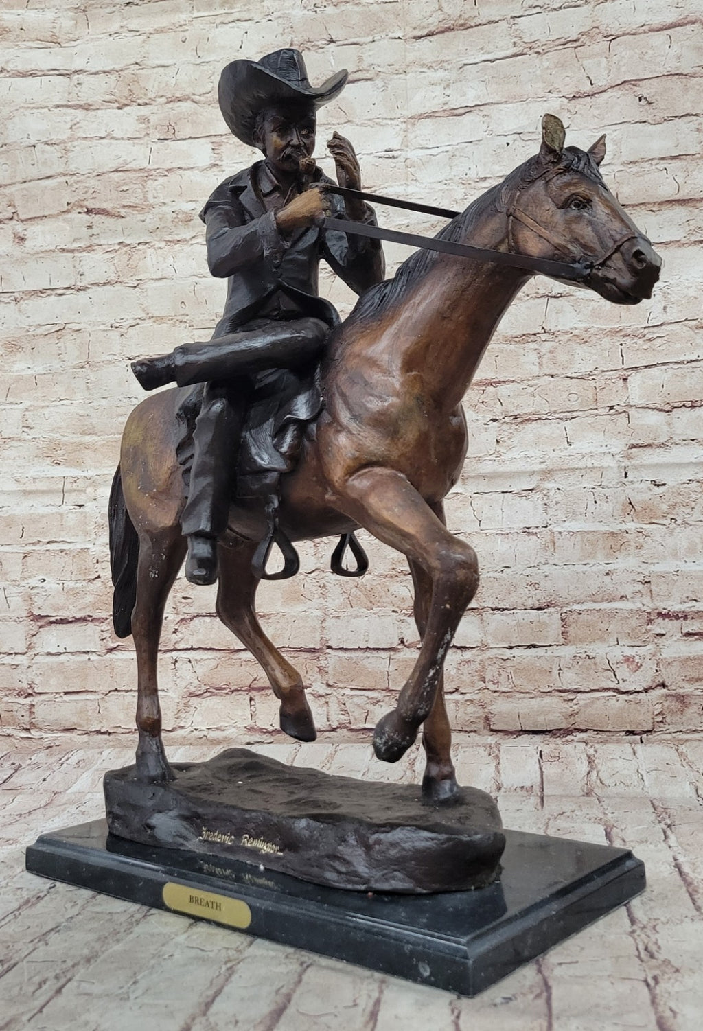 As a tribute to cowboy culture and the rugged spirit of the frontier, "Breath" invites viewers to immerse themselves in the beauty and simplicity of life on the range. Whether displayed in a home, office, or gallery, this western bronze sculpture serves as a timeless reminder of the enduring legacy of the American cowboy.