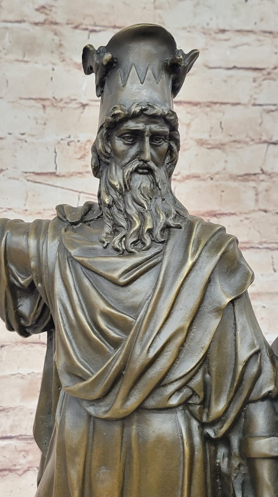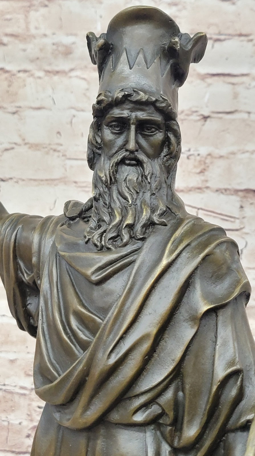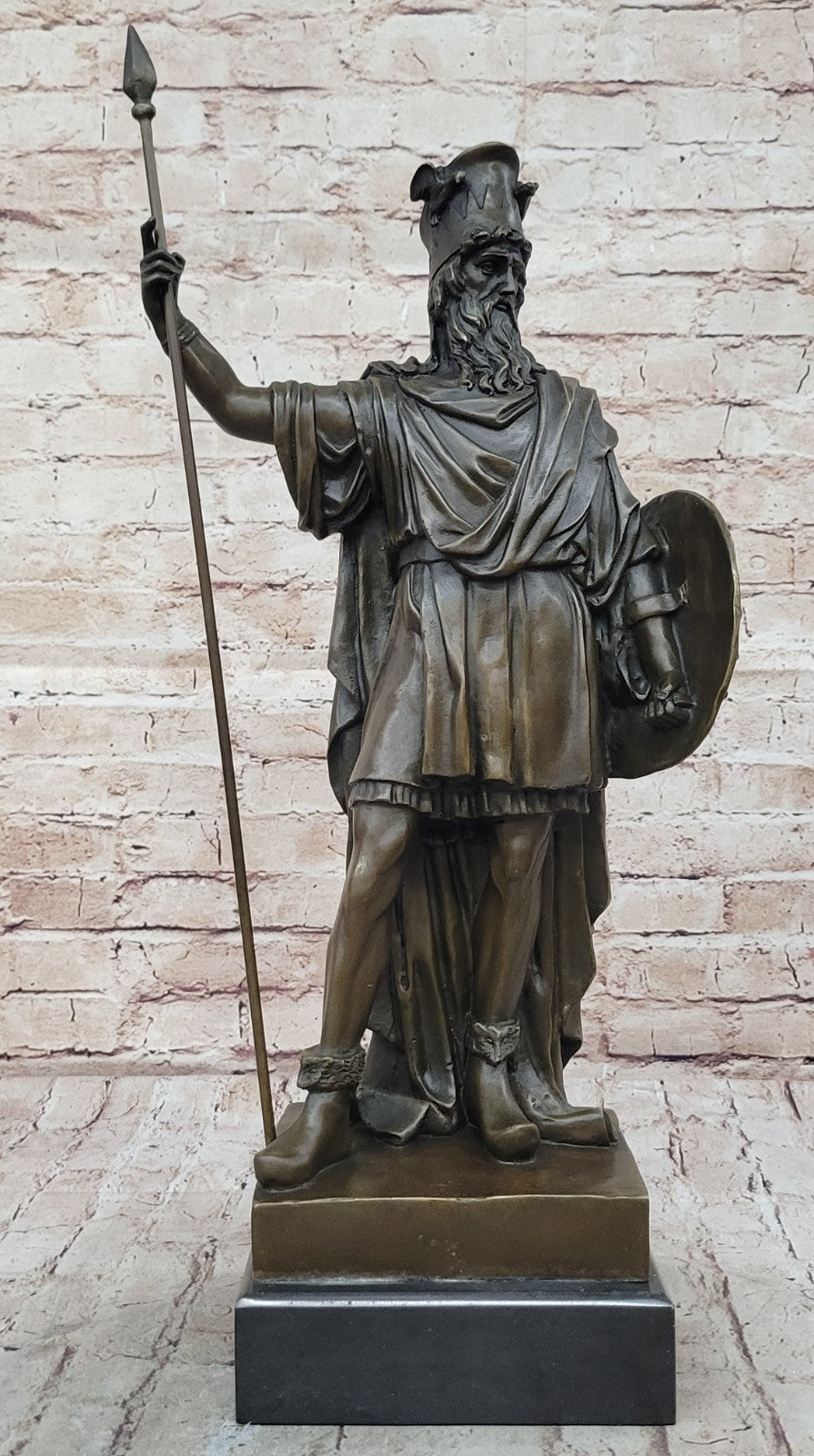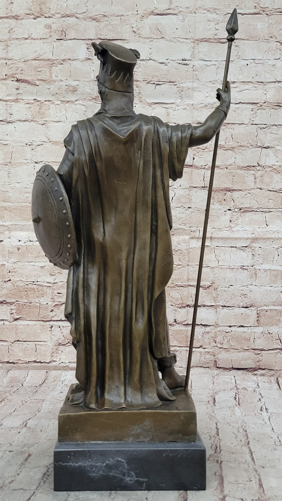 Crafted using the ancient lost-wax casting method, this sculpture is a testament to the enduring artistry and craftsmanship of the past. The rich brown patina finish accentuates the intricate details of the piece, from the folds of his robes to the resolute expression on his face. This sculpture is not just a symbol of historical significance but also a timeless work of art that will command attention and admiration in any setting.
