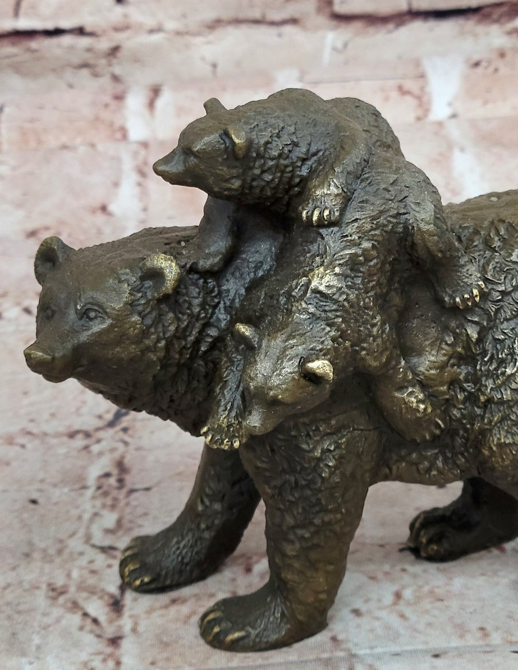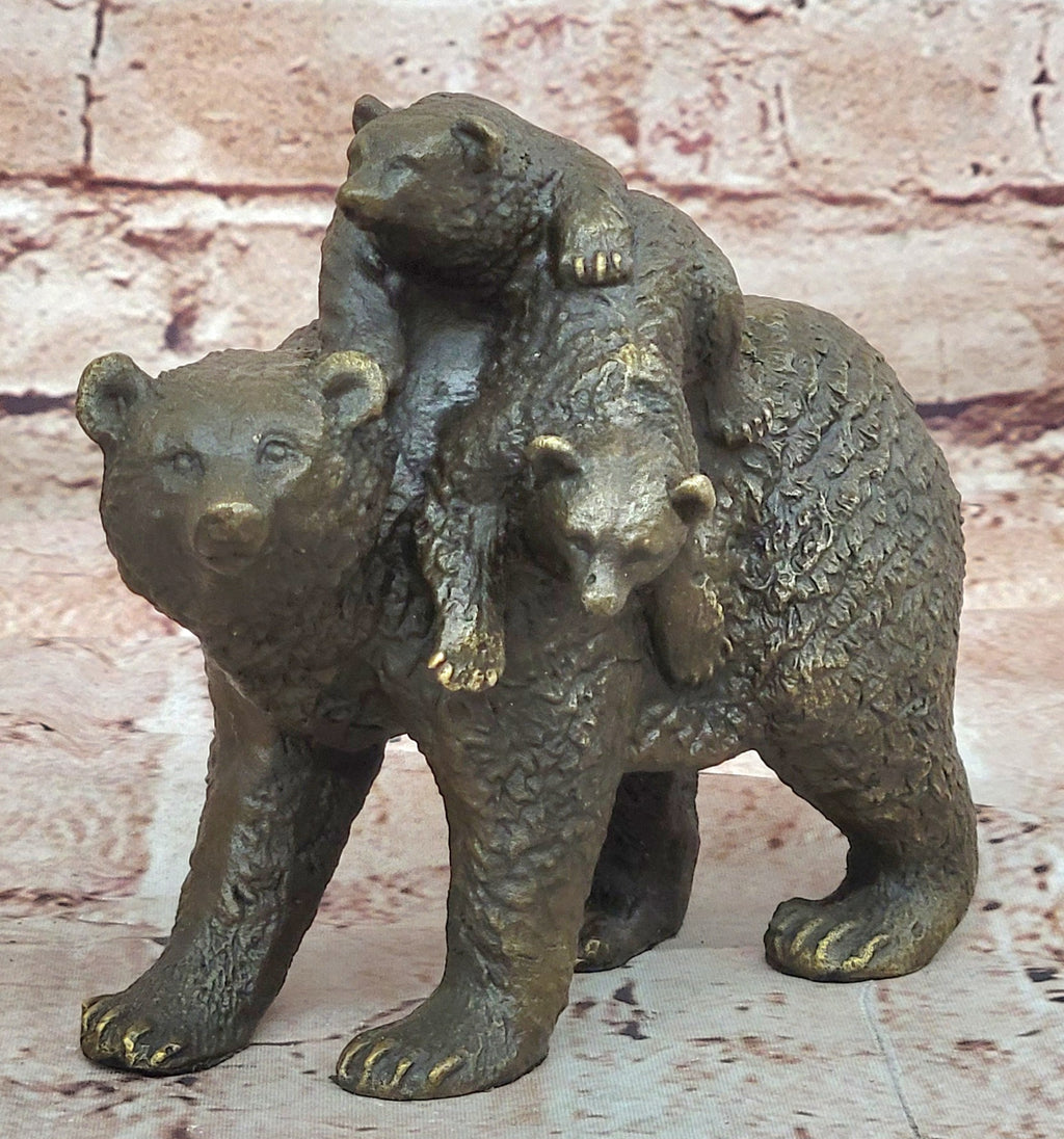 This sculpture beautifully portrays the maternal instincts of the mother bear as she carries her cubs on her back. The intricate details of the cubs' curious expressions and the mother's strong yet gentle posture highlight the connection between family members in the animal world. Crafted with precision and care, the sculpture embodies the essence of nature's harmony.