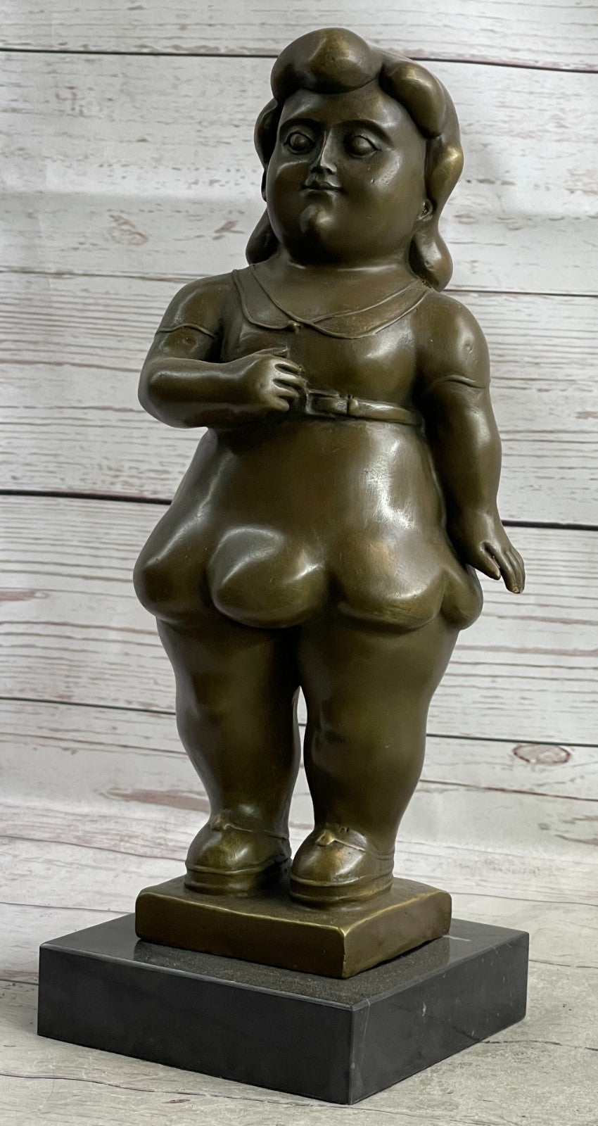 Fernando Botero's signature graces the base of this sculpture, emphasizing its origin and artistic significance. Whether displayed in a private collection, gallery, or public space, this piece serves as a testament to Botero's ability to create art that is both visually captivating and emotionally resonant. It is a must-have for collectors and enthusiasts of Botero's iconic style.