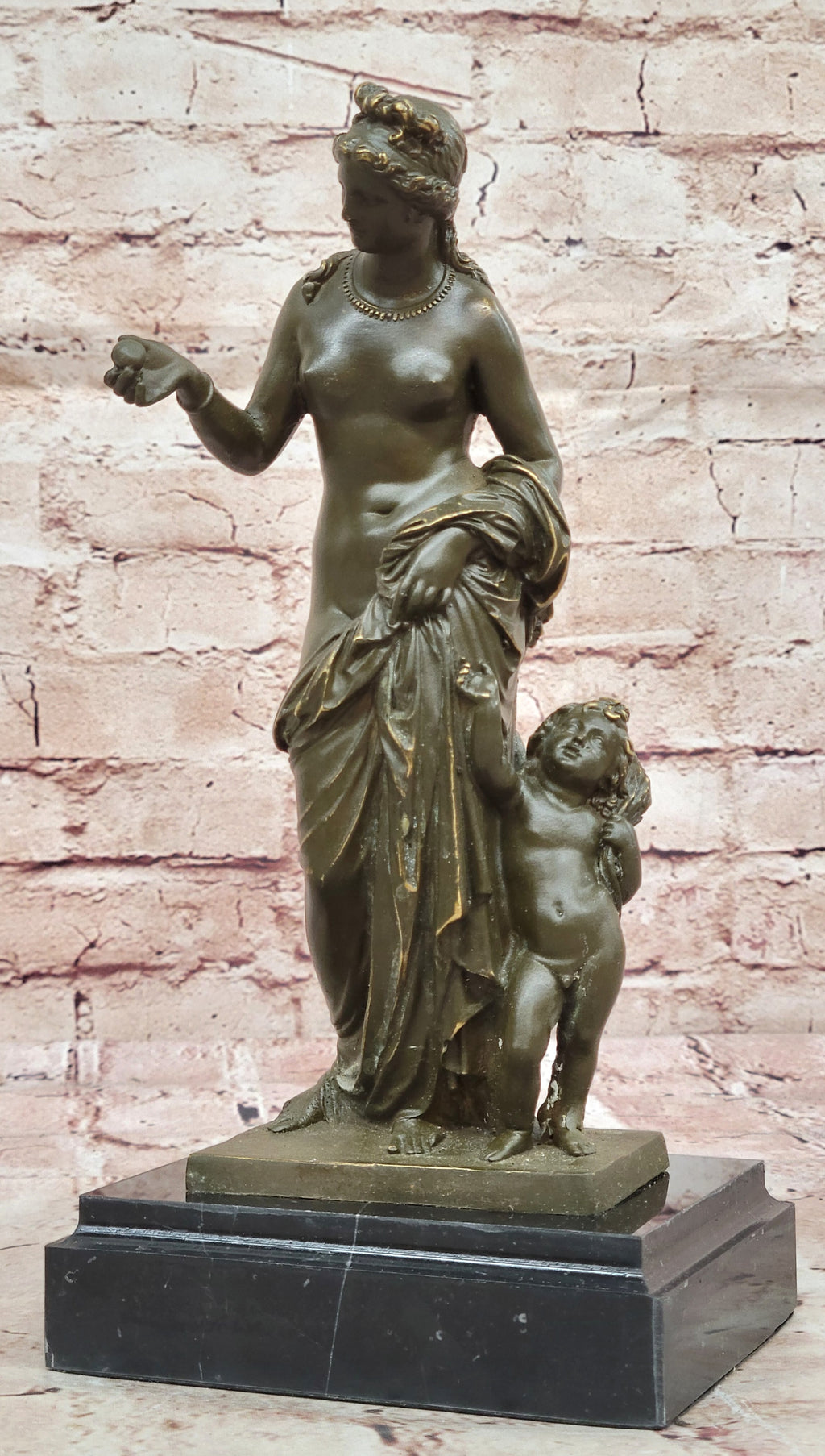 Handmade using the traditional lost wax method, this piece reflects exceptional craftsmanship and artistic sensitivity. The rich brown patina adds warmth and enhances the fine detailing in their hair, drapery, and expressions, bringing the mythological figures vividly to life.
