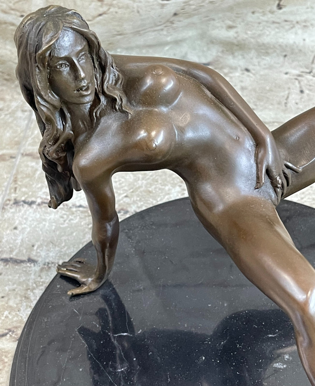 Elevating its aesthetic appeal, the sculpture rests upon a sleek black marble base, adding a touch of sophistication and enhancing its overall presentation. The piece is adorned with the signature of the renowned artist Mavchi, whose artistic prowess and attention to detail are evident in this stunning creation.
