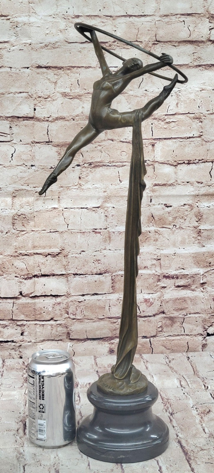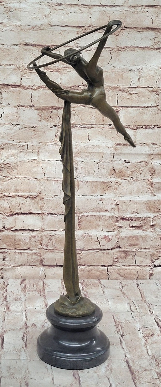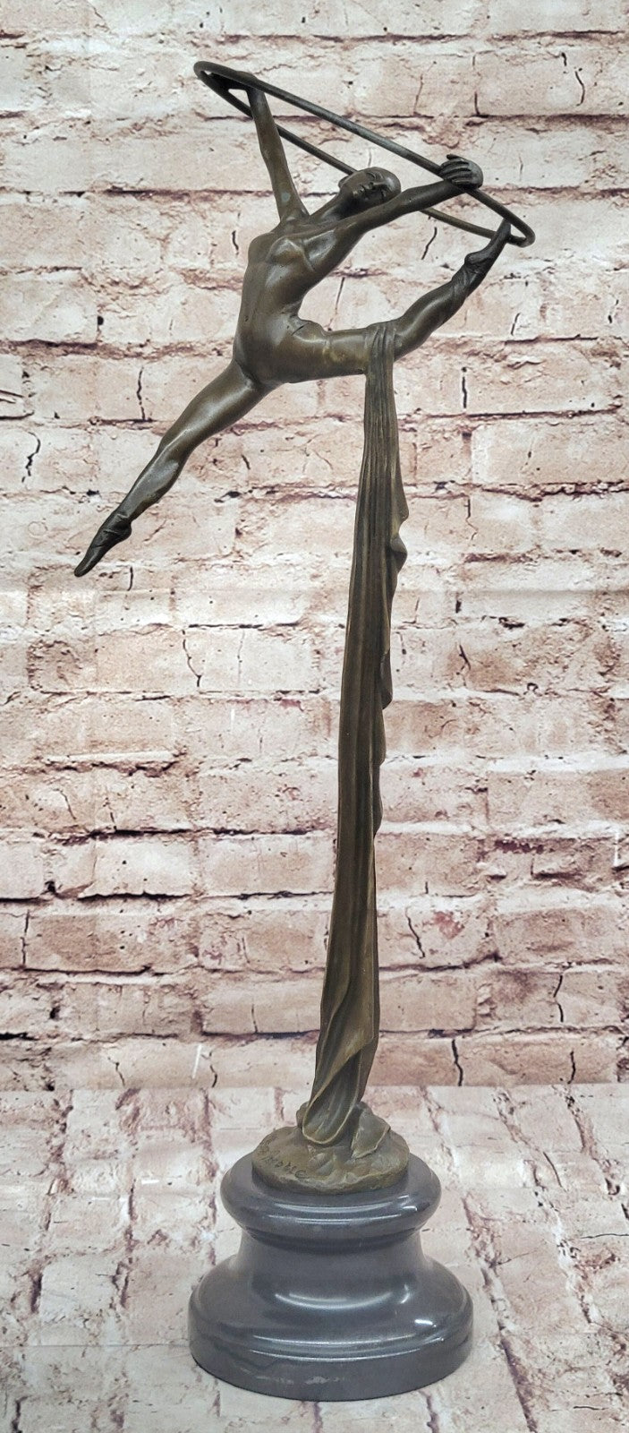 Crafted using the ancient lost-wax casting technique, this sculpture exudes authenticity and intricacy. The brown patina finish enhances the sculpture's depth and texture, accentuating the Gymnast's dynamic pose. Poised atop a sleek black marble base, the sculpture stands as a testament to the fusion of art and athleticism, a perfect embodiment of boundless energy and expression. Artist Milo's signature attests to the sculpture's craftsmanship and quality, making it a captivating centerpiece for any space and a tribute to the artistry of movement.