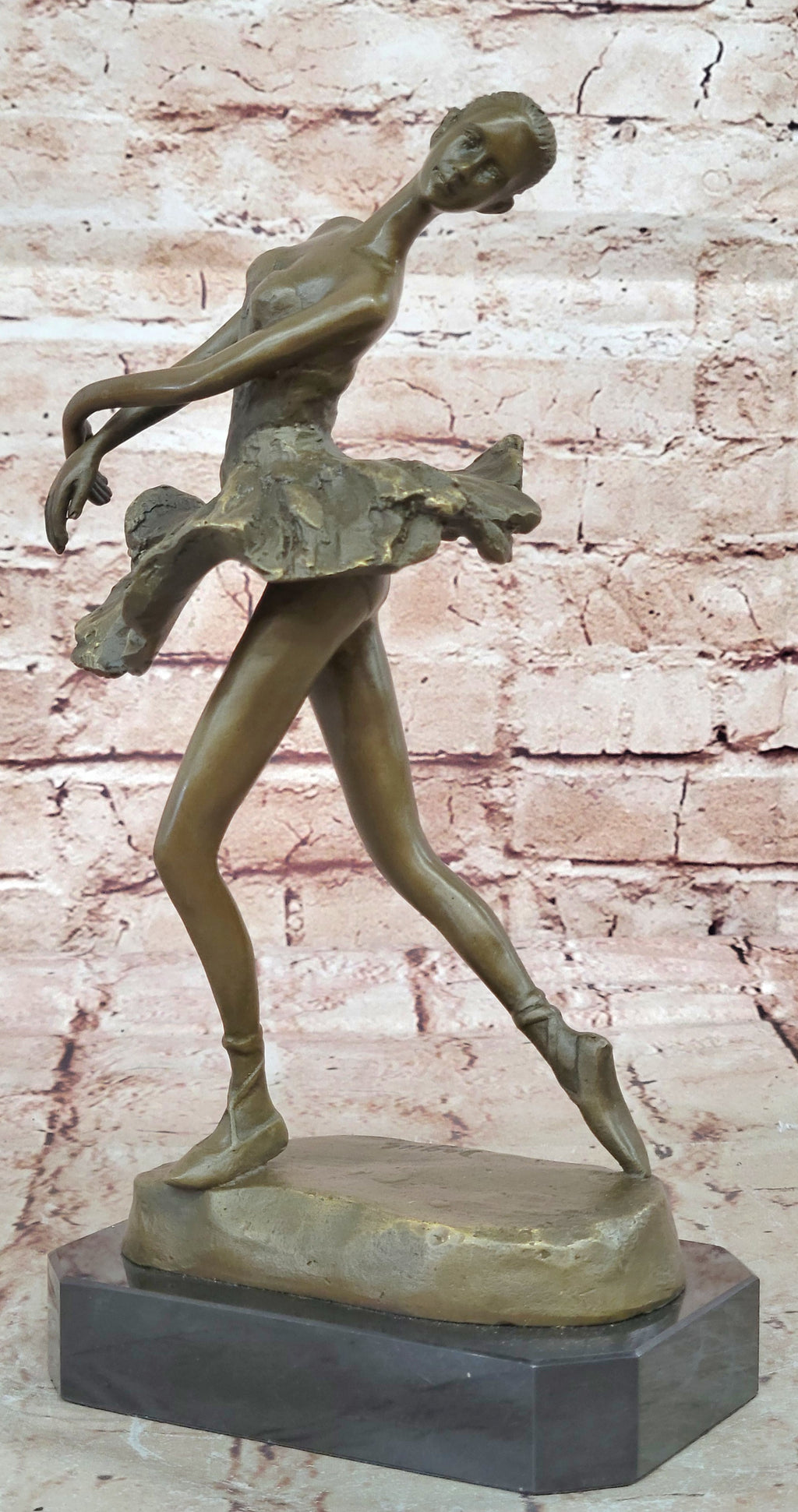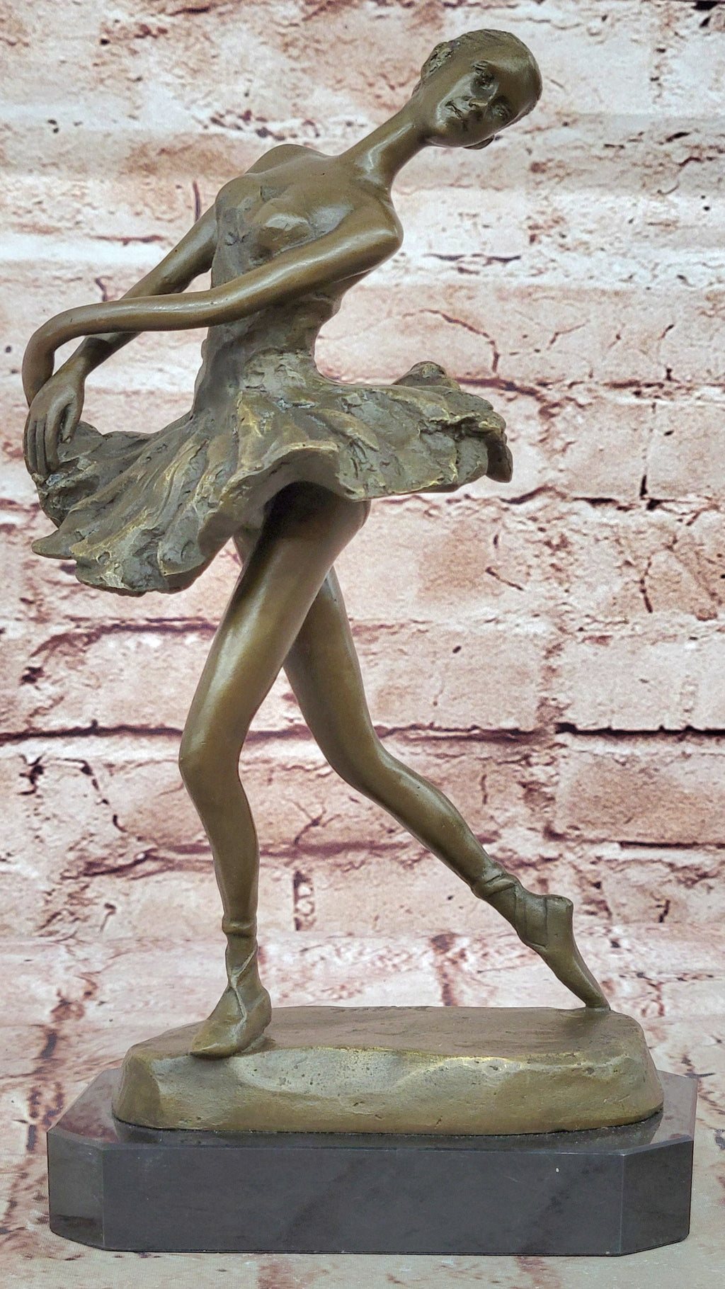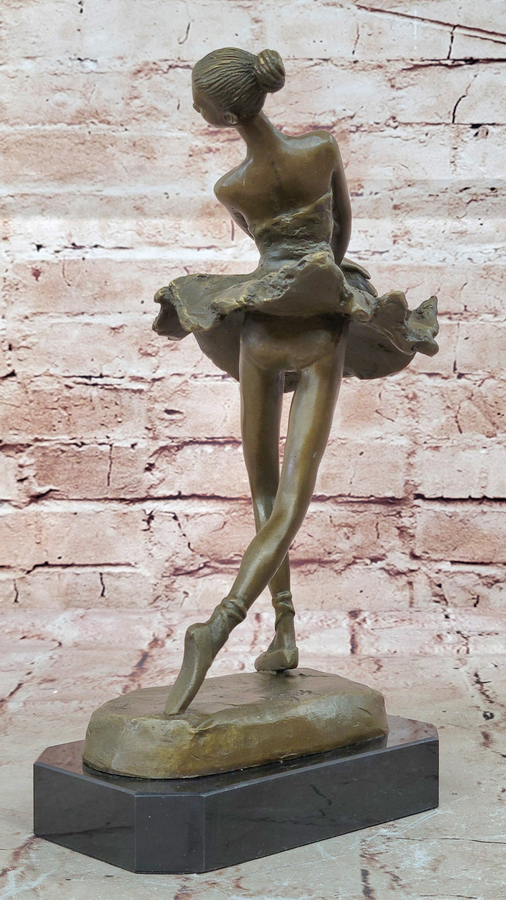 In this particular sculpture, Degas continues to defy categorization, offering an individualistic and special creation. Executed using the ancient "Lost Wax Method," the sculpture carries an aura of authenticity, each detail meticulously rendered to perfection. The subtle interplay of the two-tone brown patina adds depth and character to the piece, enriching its visual impact. Resting atop a black marble base, this artwork gains a sense of elegance and distinction, further emphasized by Degas' signature. Through this sculpture, Degas offers a glimpse into his artistic philosophy – a celebration of emotions, timelessness, and the seamless fusion of the present and the future.