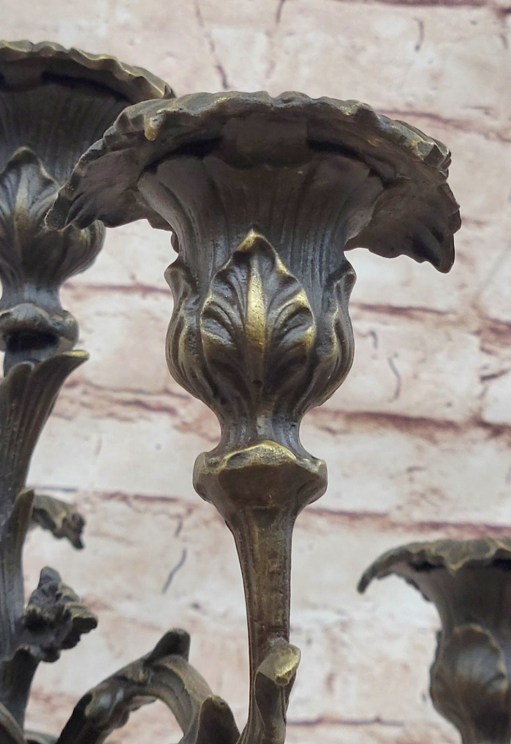 Handmade with meticulous attention to detail, this candelabra sculpture was created using the ancient lost wax method. This traditional technique allows for the precise capture of fine details, ensuring that every aspect of the design is rendered with accuracy and depth. The lost wax process, combined with Milo’s artistic expertise, results in a sculpture that is not only visually stunning but also of exceptional quality. The rich brown patina applied to the bronze adds warmth and character, giving the piece a timeless elegance that will complement both classic and contemporary interiors.