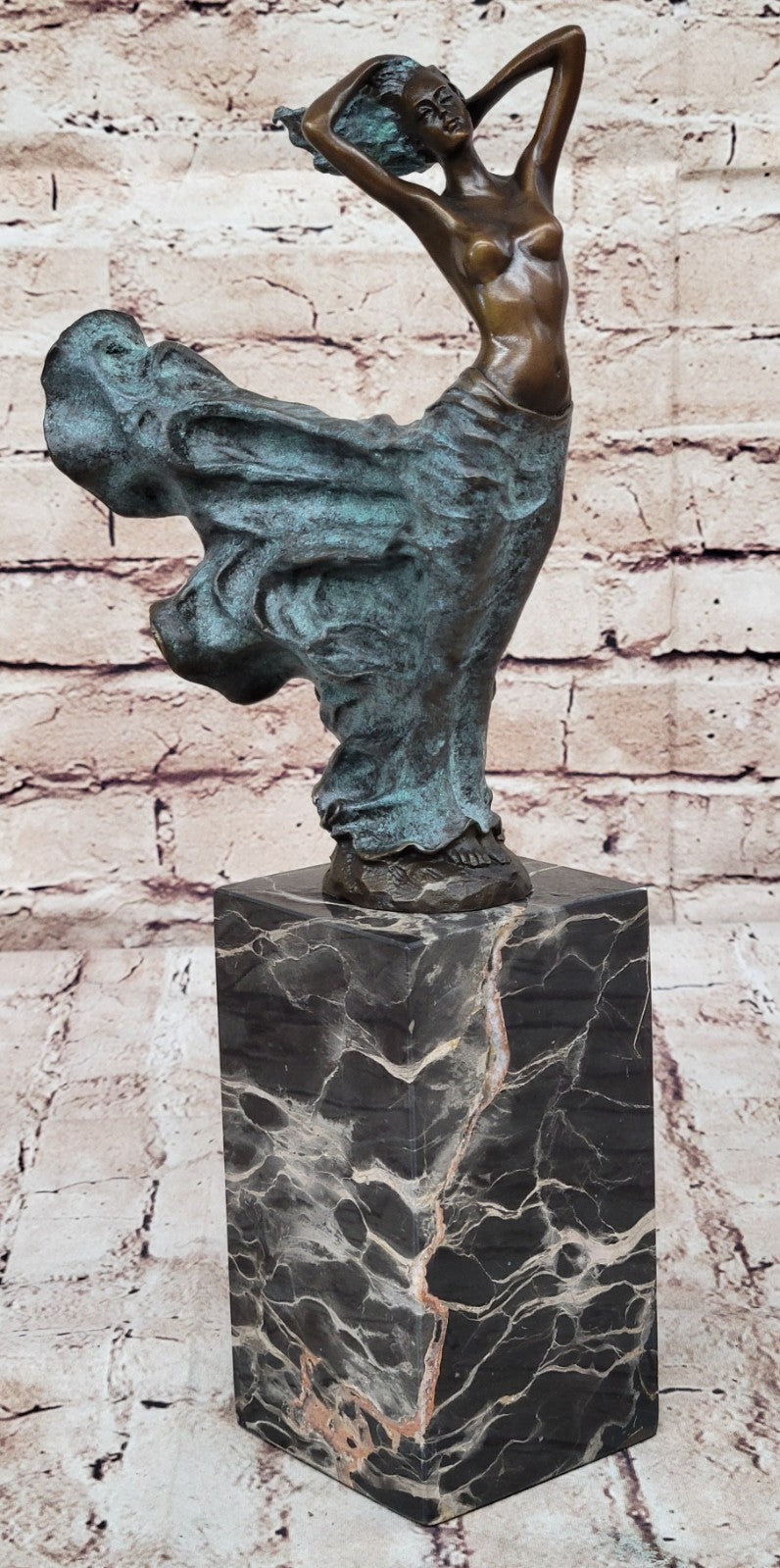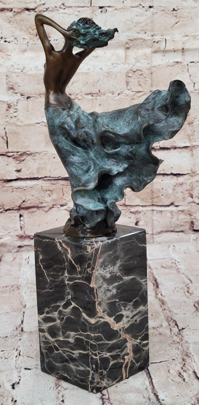Handcrafted with meticulous artistry, this sculpture is made from 100% bronze and reflects exceptional craftsmanship. Its rich brown and green patina enhances the sense of movement and depth, while touches of blue patina in her hair and dress evoke the serene beauty of tropical waters. The careful blending of colors adds dimension and brings the dancer’s spirit to life.