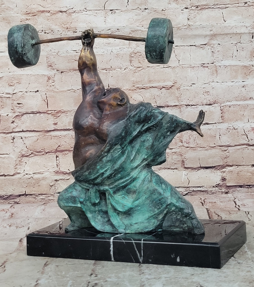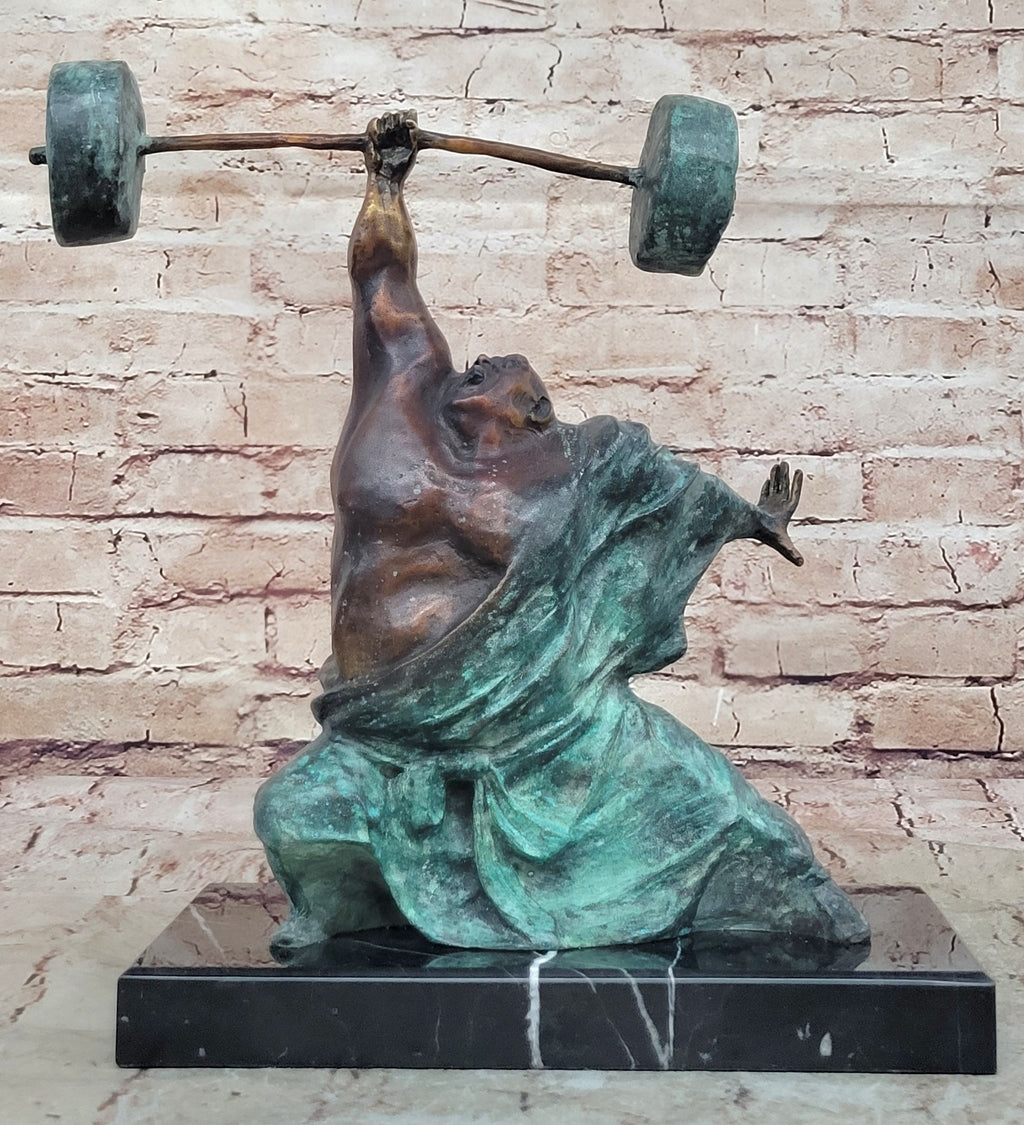 Whether you're a fitness enthusiast, an art collector, or someone seeking a unique decorative piece, this weightlifter sculpture is a testament to Milo's skill and artistic vision. The combination of the Lost Wax Method, exquisite patina, and marble base creates a harmonious blend of artistry and athleticism that will undoubtedly capture the attention of admirers. Elevate your surroundings with this captivating and original Large Abstract Modern Artwork Weightlifter Bronze Sculpture by Milo.
